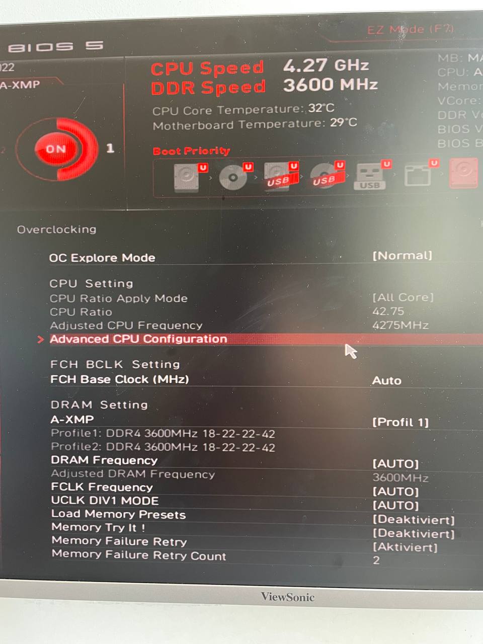 und egal was ich am Ram einstelle es wird nicht übernommen. Natürlich habe ich immer alles abgespeichert und beim erneuten Reingucken in BIOS hat sich nichts geändert, also wenn ich auch 3600Mhz einstelle bleibt es so auch im Bios, nichts wird zurückgesetzt.