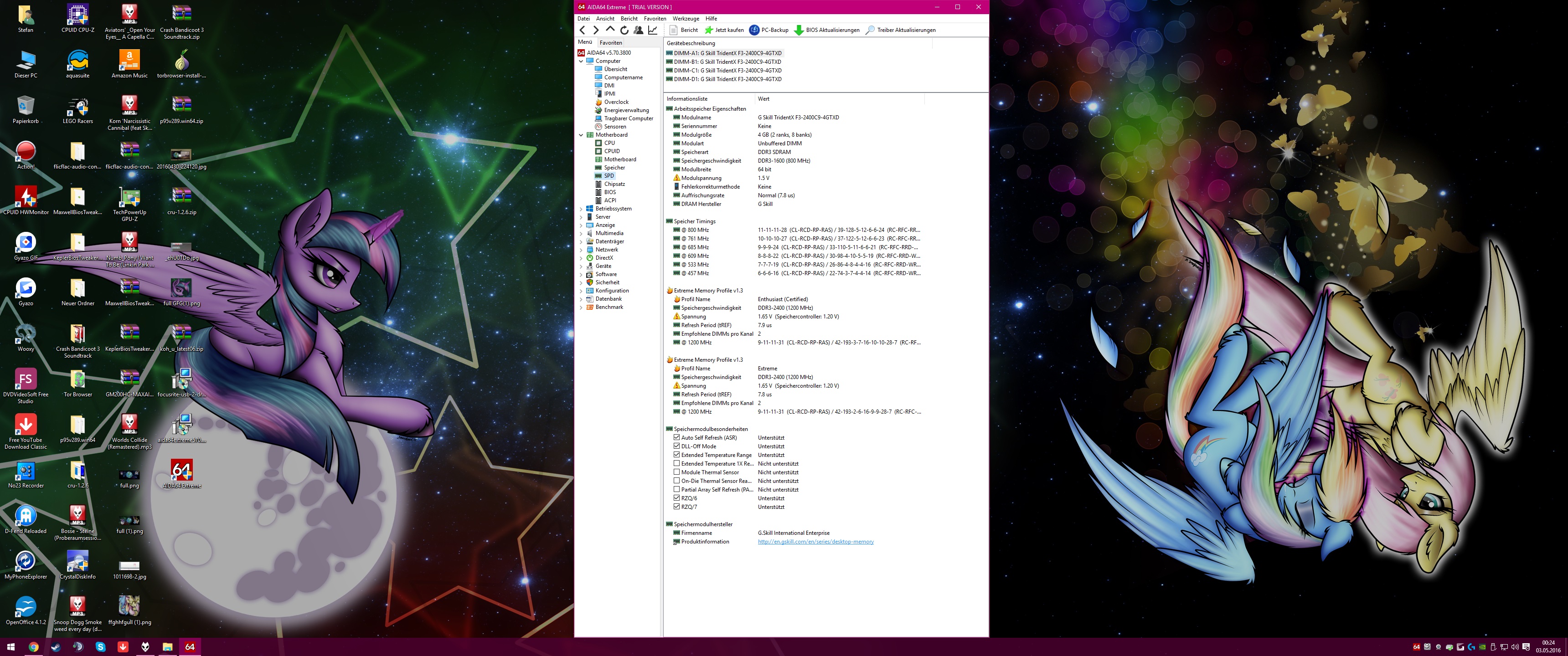 Es sind 2x8 GB G.Skill TridentX DDR3-2666MHz mit 11.13.13.35.2T, die aber leider nur mit 2600Mhz bei 1.65V fehlerfrei auf meinem asrock Z77 extreme4 laufen. Vermutlich schlechte Kompatibilität. Ich hatte vorher 2x4 patriot black mamba 2400er @ 2666 drin, liefen problemlos mit 13.14.14.39.1T bei 1.72V.