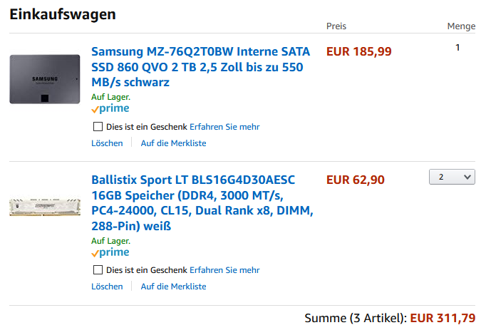 Heute noch M.2 SSD 2TB von Intel bestellt. Weihnachten ist gerettet 🎄... da will ich nicht wieder doppelte Preise haben.