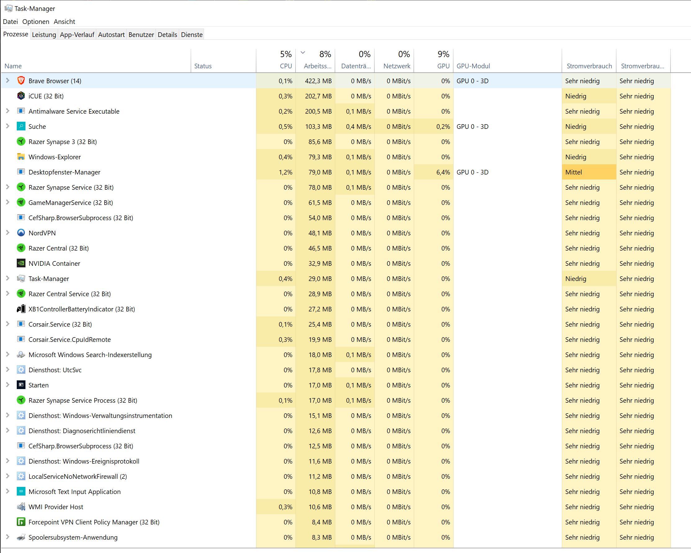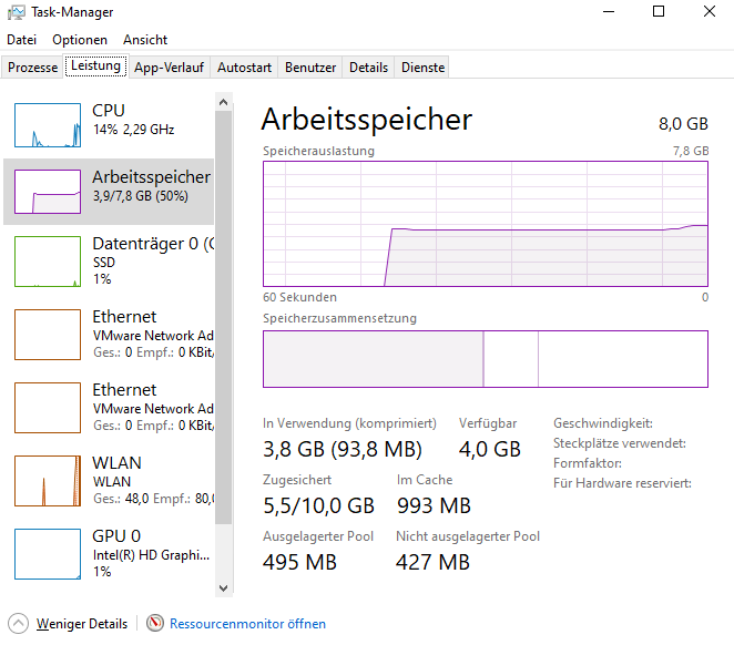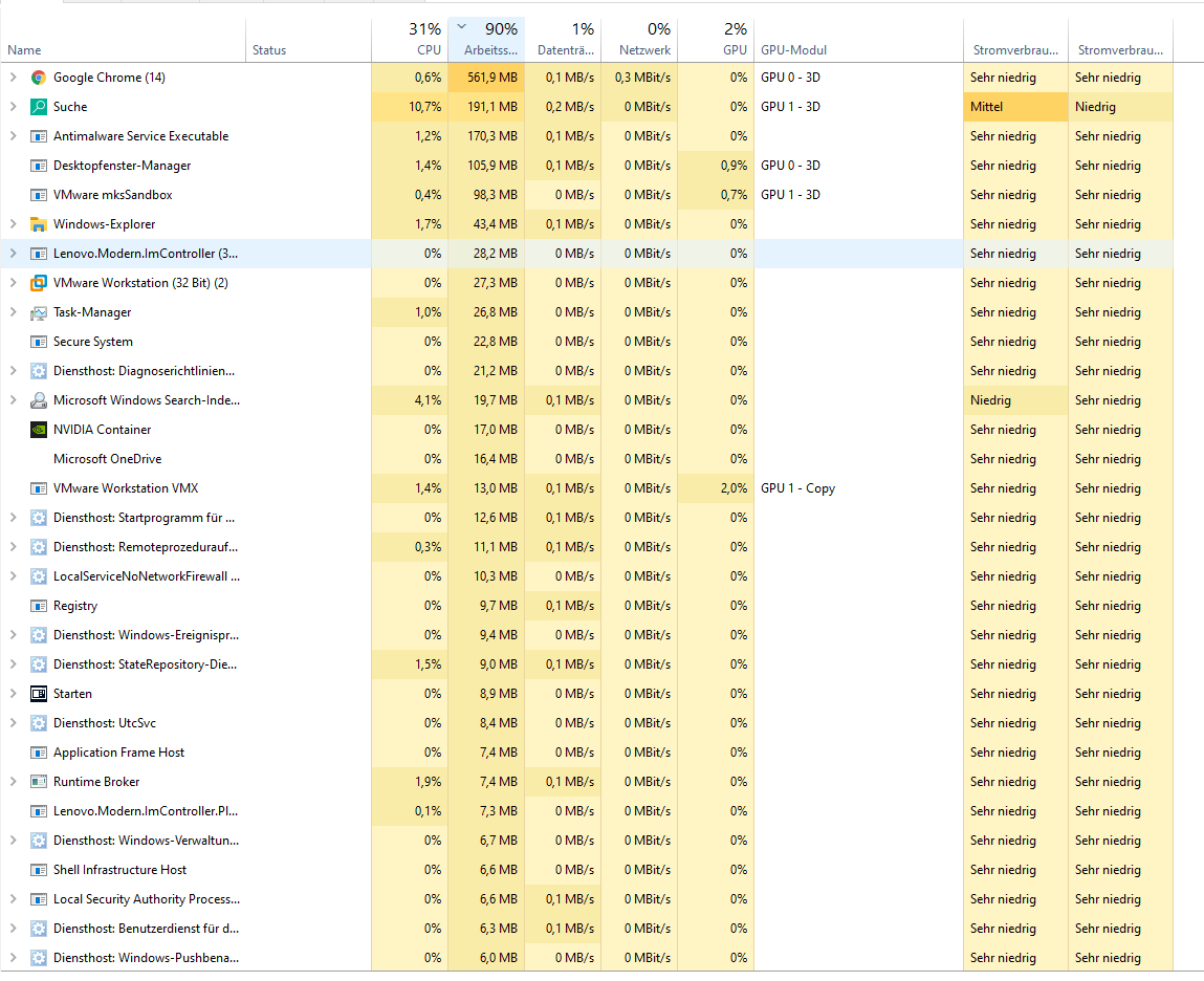 Ich habe bedenken bei der Auslastung meines Arbeitsspeichers - Wie man am Screenshot sieht, werden nur ca 1 GB von meinem Benutzer belegt ist. Was ist der Grund für eine solch hohe Usage? Belegt Windows während dem laufen einfach 5-6GB RAM?