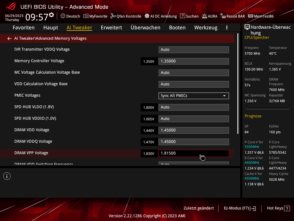 Nach Ramtausch wegen Defekt und inzwischen Mainboardtausch durch Asus + neues Bios laufen nun 7600MT/s stabil.