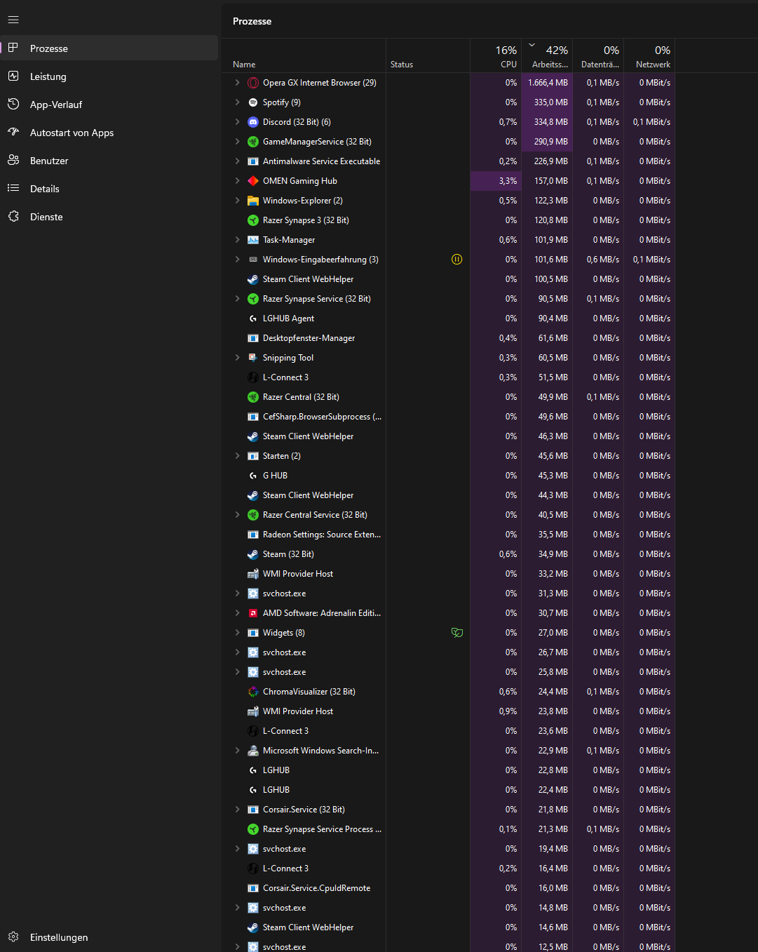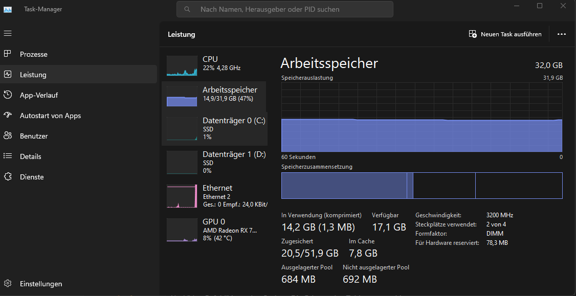 Moin, ich hab mal wieder ein Problem. Und zwar wird mein RAM über den Tag immer voll und es fängt an zu laggen. Sobald ich Neustarte ist er wieder leer. Hab mir grade erst neue 32gb Riegel gekauft. Ich hab das Gefühl das mit jedem Tab/Game Speicher dazu kommt aber der Ram sich nicht leer wenn ich das Spiel oder den Tab schließe. Hab dieses Jahr alles neu gekauft bis auf das Mainboard das ist ca. 3-4 Jahre alt, Kann sowas am Mainboard liegen ?