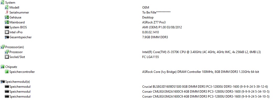ich habe mir zu meinen 2x4GB Ram noch 1x8GB Ram dazu gekauft. Jedoch werden im System nur 8GB angezeigt. Die Grafik im Bios Menü zeigt an das der drin ist, aber im Menü zeigt der none an.