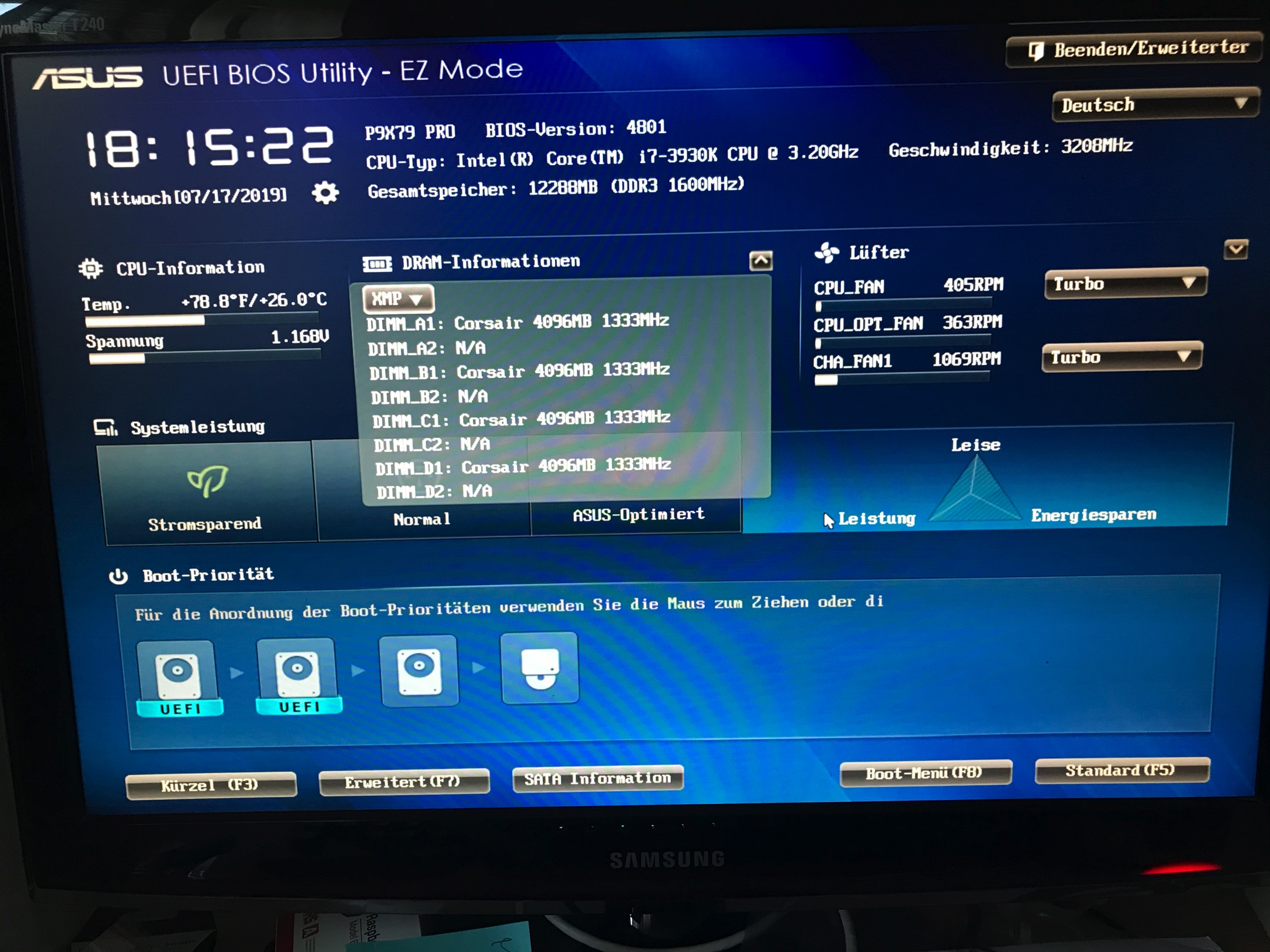 ich habe ein Asus P9x79 Pro mit 4x4GB RAM von Corsair (LP Vengeance 1600)