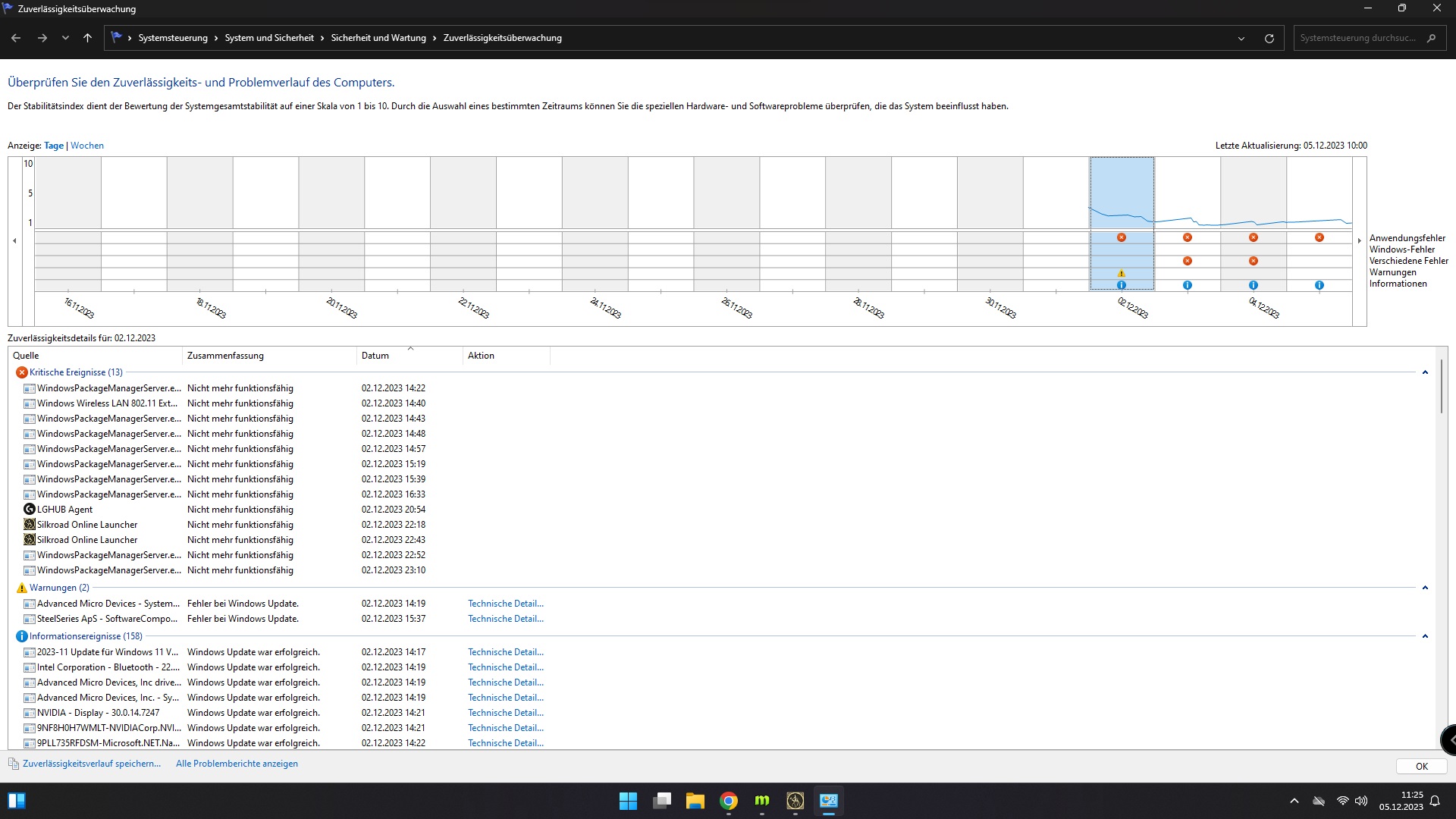 Der Zuverlässigkeitsverlauf zeigt zum Schluss mehrere Fehler an und die haben alle mit einem Spiel zu tun, dass ich spiele. Das kann aber auch daran liegen, dass der Antivirus immer bei der exe anschlägt ( wird immer als Virus erkannt ist aber keiner )