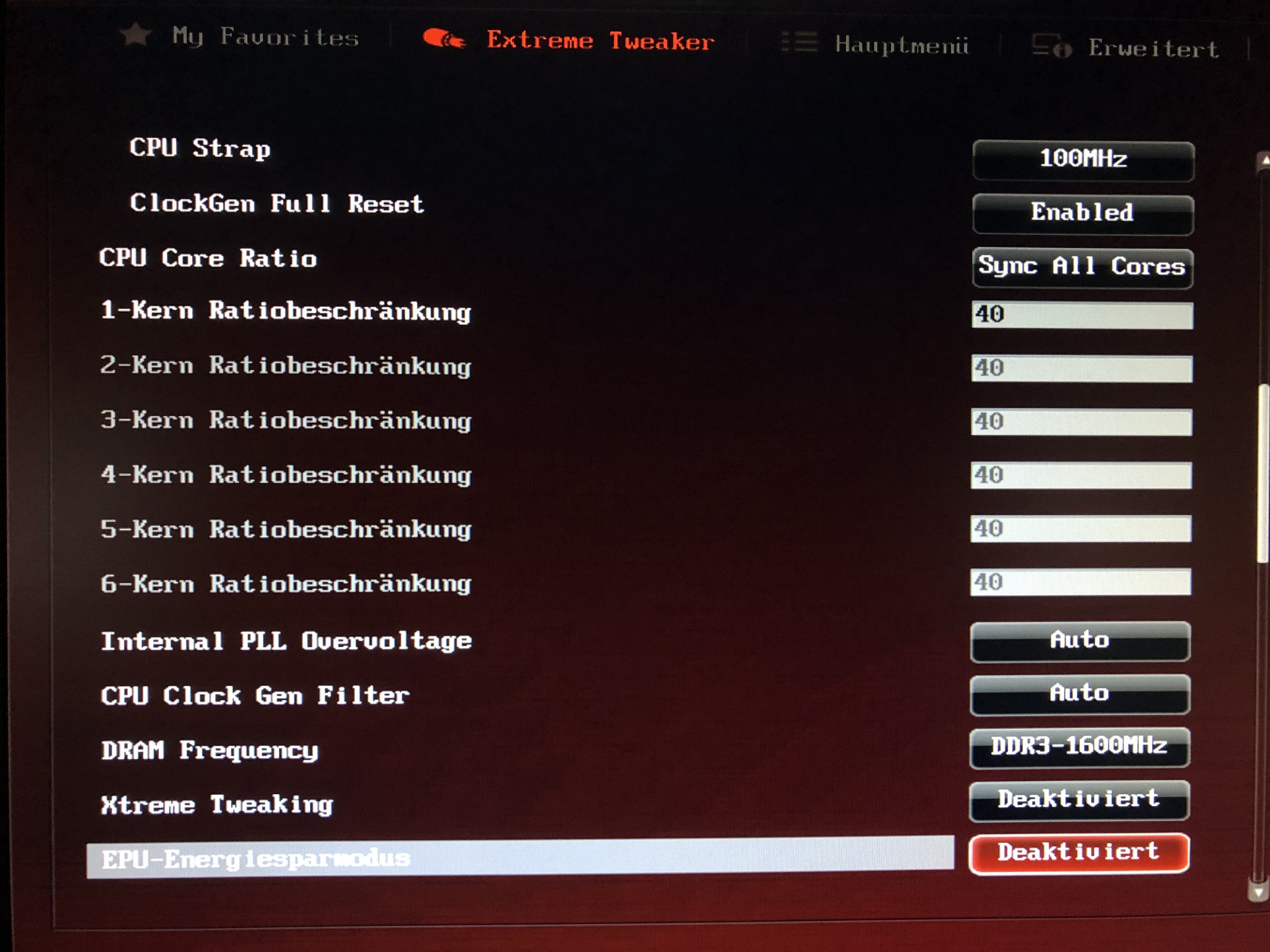 Testweise habe ich mein System etwas übertaktet. Im Moment habe ich im BIOS 1.250 VCore, Multiplikator 40x, Bustakt 100, LLC 0%, VTT und PLL Auto - bei 60-61 Grad CPU-Temp.