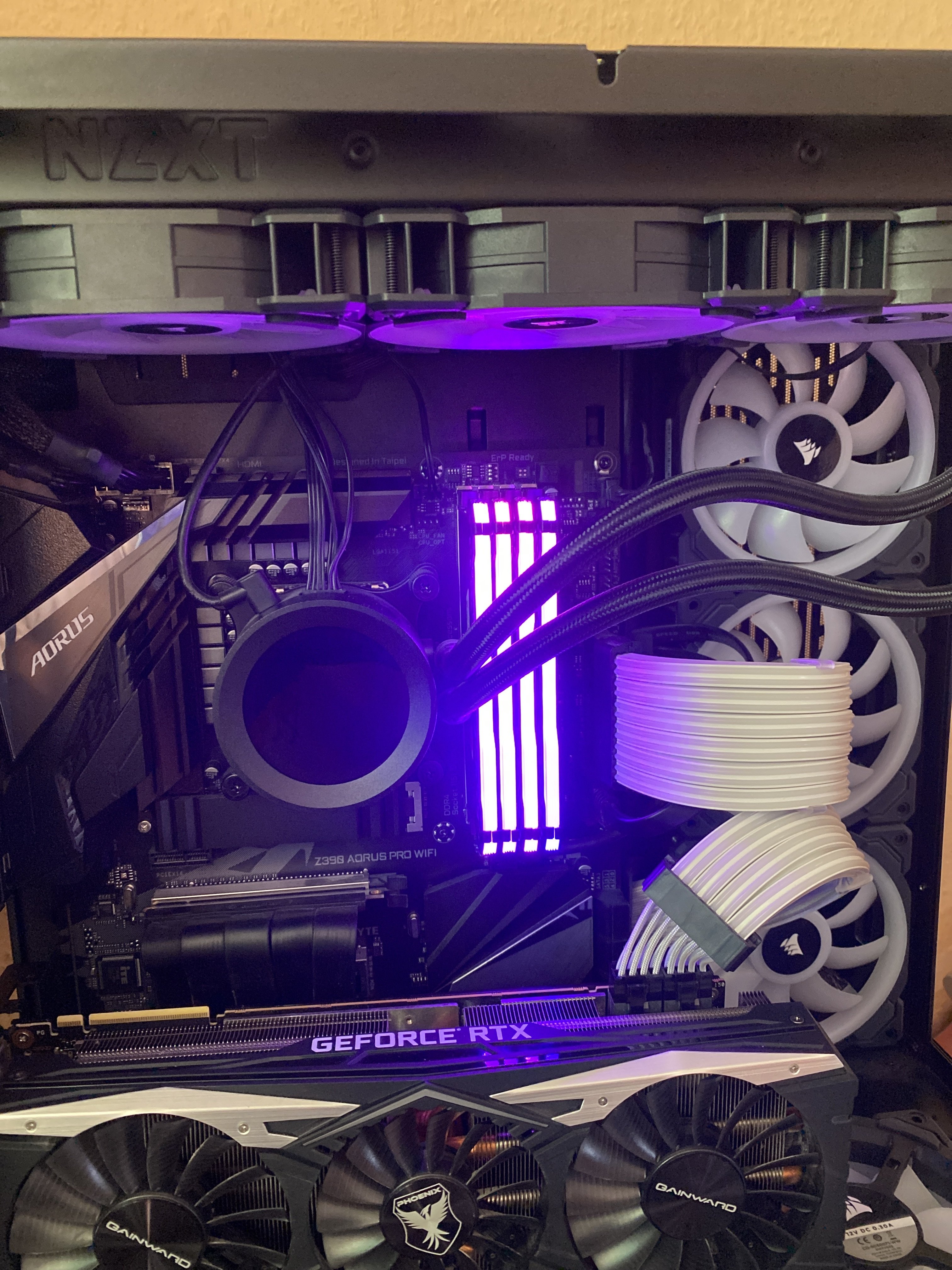 | Gigabyte Z390 Aorus Pro WIFI Intel Z390 So.1151 Dual Channel DDR4 ATX Retail 2x 16GB (2x8GB) Corsair VENGEANCE RGB PRO DDR4 3600 (PC4-28800) C18 AMD Optimized Memory – Black Rtx 2080ti Phönix 850 Watt be quiet! Dark Power Pro 11 Modular 80+ Platinum |