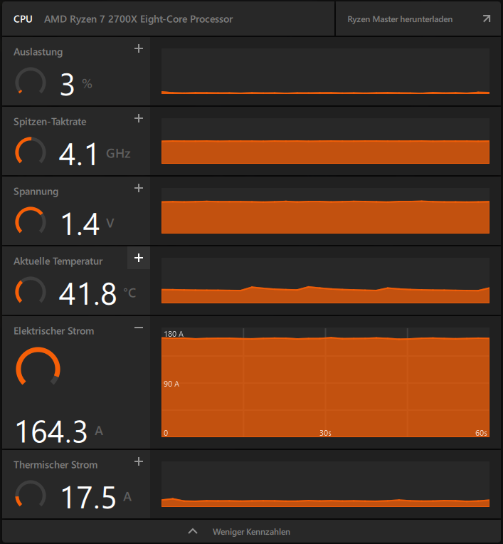 Nur mal so nebenbei mir kommt dieser Werte "Elektrischer Strom" ziemlich hoch vor. Ich hab in dem Fall keine Ahnung wie der Wert sein müsste, ist in Ampere angegeben. Aber im Idle hört sich das ziemlich viel an oder?