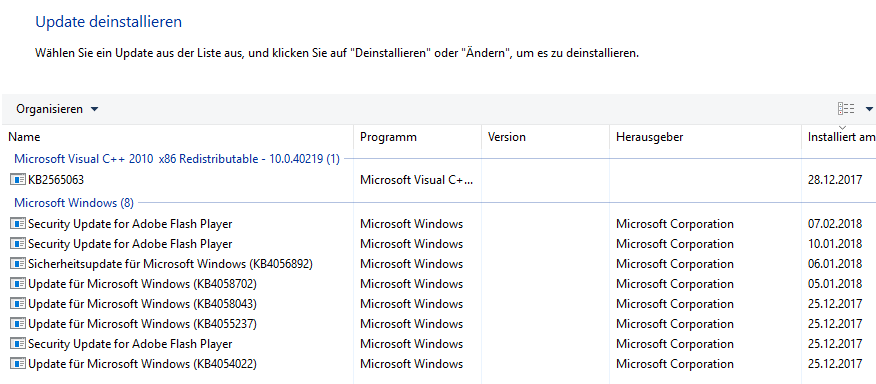dabei bräuchte ich wohl etwas Hilfestellung. Ich habe bereits einmal versucht, mich dieser Updates zu entledigen, bin mir aber mangels Übersicht und genauer Bezeichnung nicht sicher, ob ich sie auch erwischt habe.