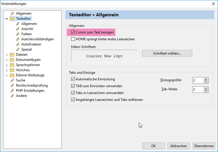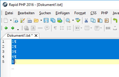kann man in Rapid PHP die Textauswahl auf den Text beschränken?