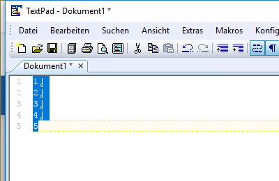 Wie man hier sieht, erfolgt die Auswahl immer zeilenweise und über geschriebenen Text hinaus: