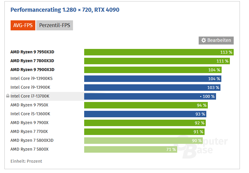 Die 11% kann man sich denke ich sparen. In 4K ~ Null Unterschied. Spätestens bei Shader Komplieren, was neuerdings immer öfter auftretet (Last of Us) z.B. rassiert der 13700k den 7800X3D/5800X3D.
