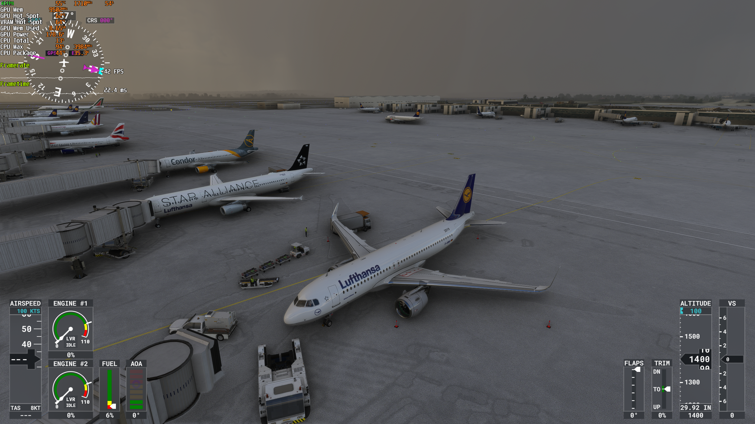 Hab mal den MSFS angeschmissen. Also selbst die UV 3080 wird nicht ausgelastet und mit Allem an incl. Live Traffic etc. also Vieles was gut auf die CPU geht merke ich erst hier (da fehlen schon paar FPS wenn auch nicht viel, hätte ich mehr erwartet) etwas im Gegensatz zu den anderen Games. Bei den anderen Games hatte ich die 3080 laufen lassen (TS>19k Setting) und da war die GPU gut wenn auch nicht voll ausgelastet,die FPS waren allerdings top.