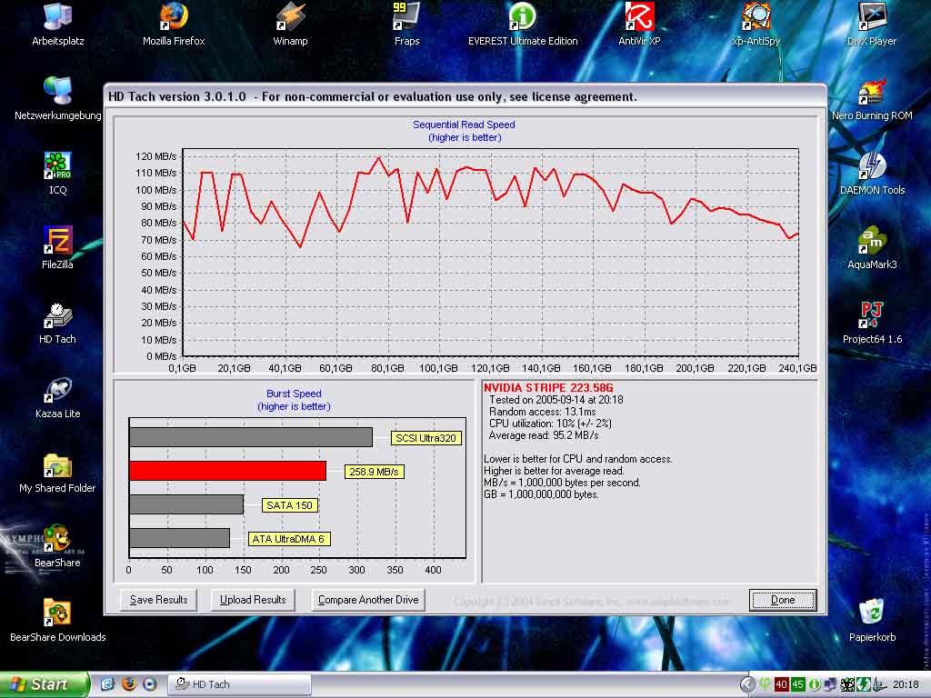 Btw. Es kommt auf das average Read an, nicht auf den Burstwert. Der liegt bei 2 Raptoren bei ca 120MB/s. Also mehr als bei deinen. Auch die Zugriffszeit ist ca um die hälfte niedriger