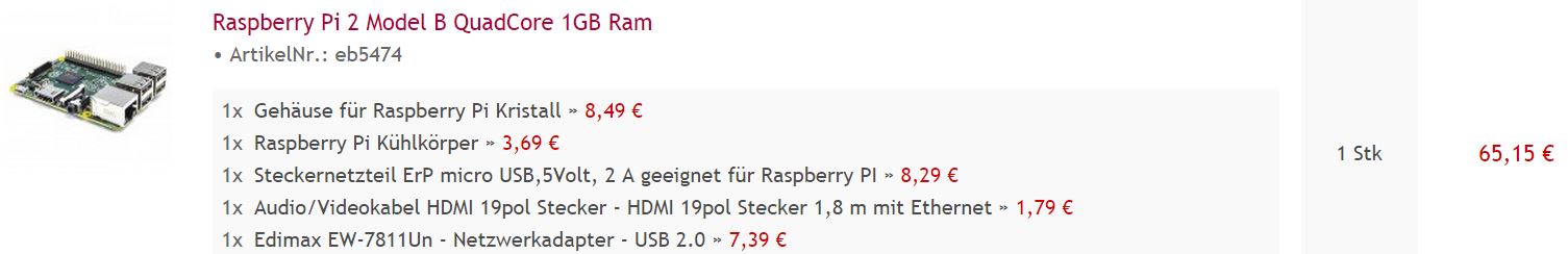 Beim Punkto Hardware hätte ich aktuell folgende Zusammenstellung (https://www.rasppishop.de, 65€ inkl. Versand):