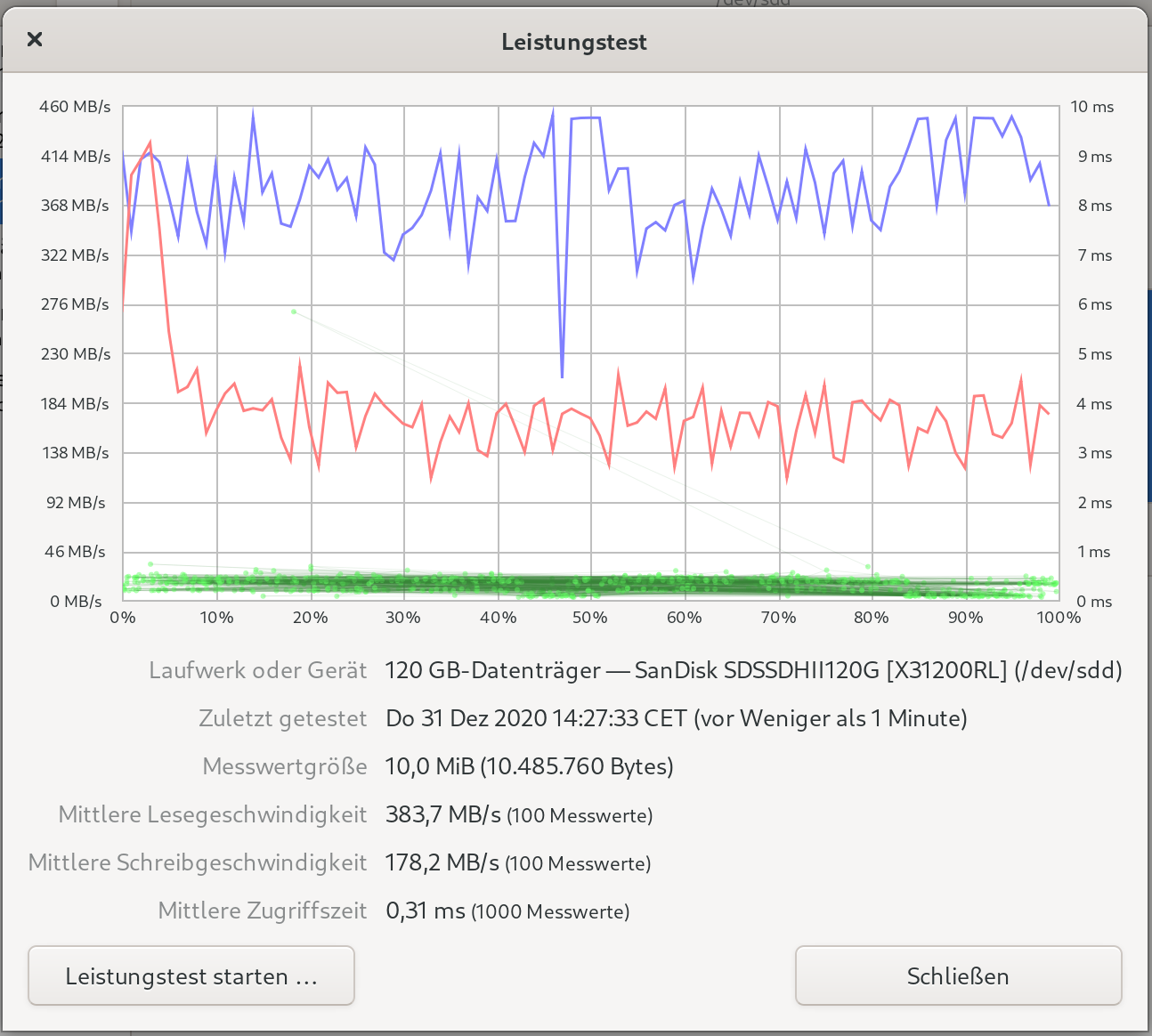 Auch eine HDD mit USB 3.0 Adapter liefert ein ähnliches Ergebnis.