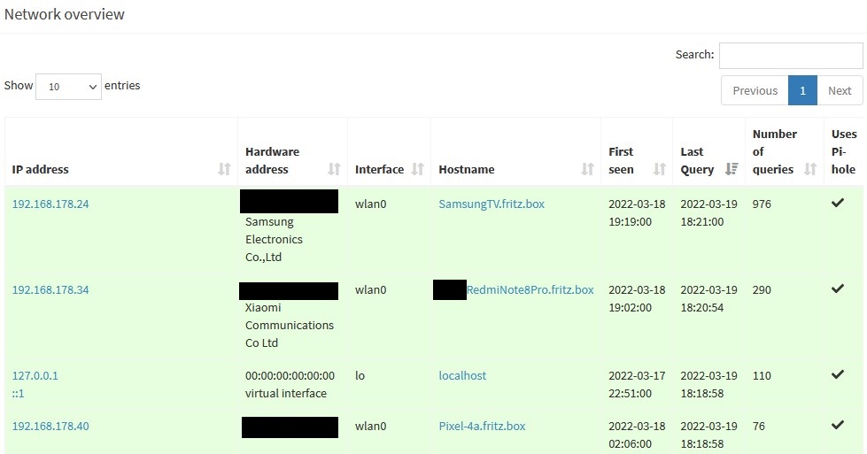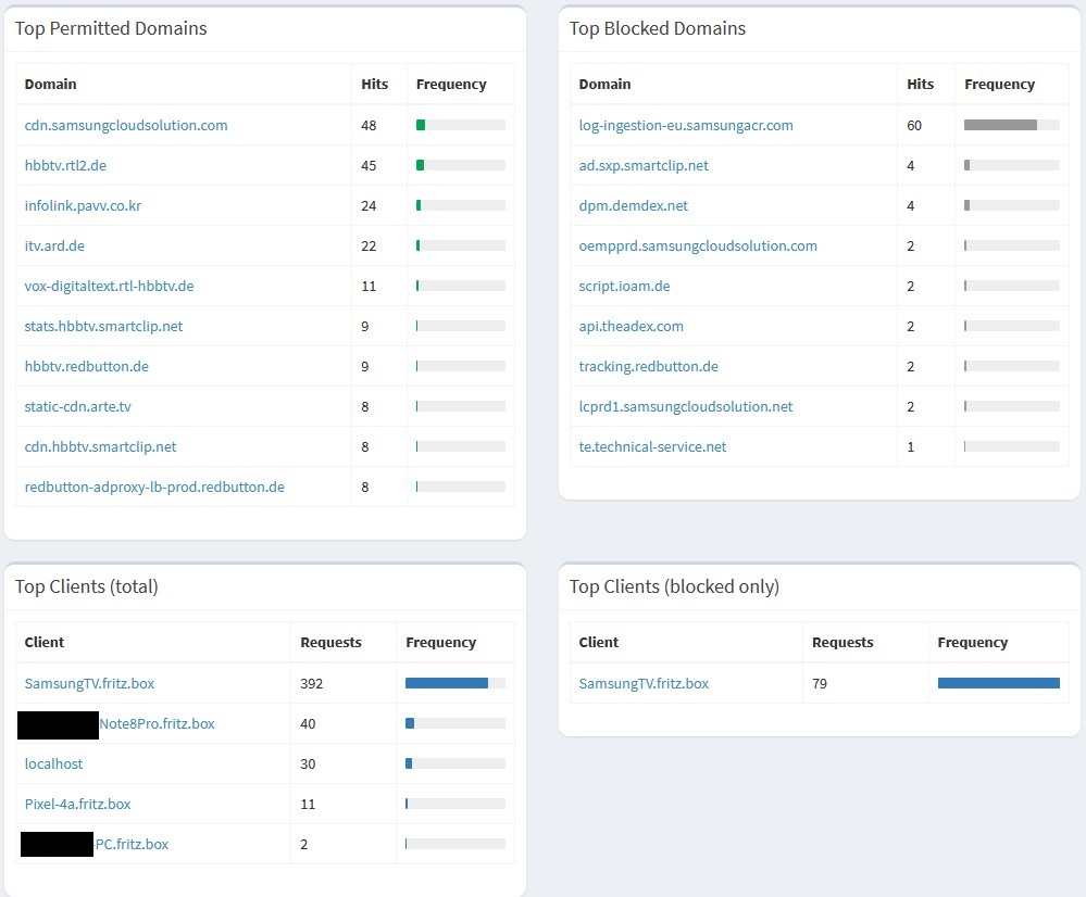 Nachteil: pihole sieht nur genau einen Client, die Fritzbox.