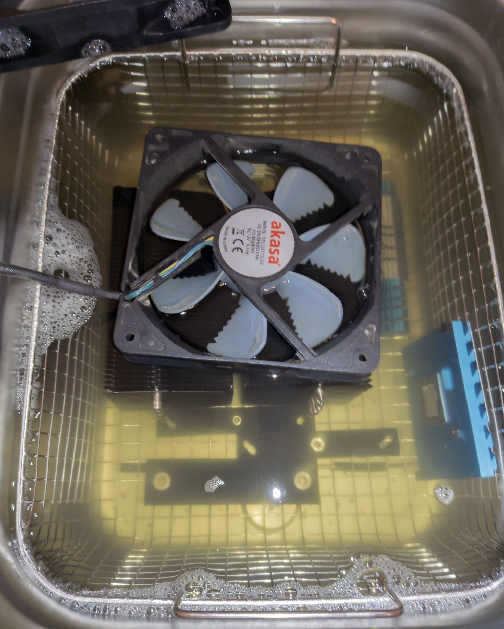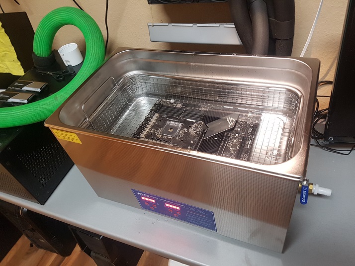 Ein Behältnis das ganze Board in Isopropanol zu tauchen hatte ich ebenfalls nicht im Haus. Ungefährlich klingt das aber auch nicht, weder für meine eigene Gesundheit + wenn da mal ein Funken springt... aber ja, Alkohol ist für die Hardware natürlich viel ungefährlicher und für den Schmutz viel wirksamer als Wasser.