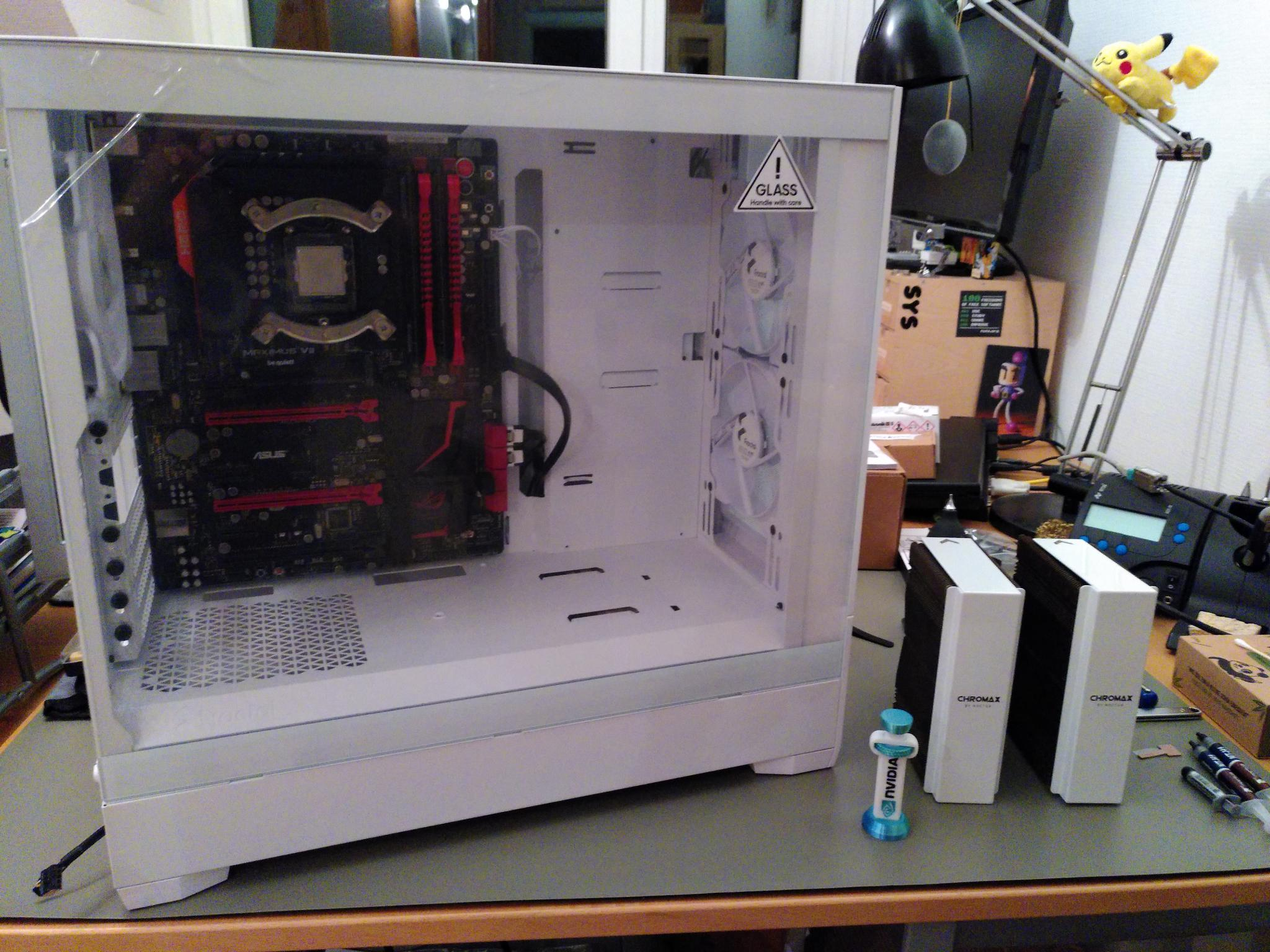 Zum Schluss habe ich auch alles gründlich mit Druckluft aus dem Kompressor trockengepustet und mit der Heißluftstation noch mal vorsichtig erhitzt (da kein Föhn im Haushalt x) ). Zur Sicherheit habe ich das Mainboard auch noch ein/zwei Tage auf dem Schreibtisch liegen lassen.