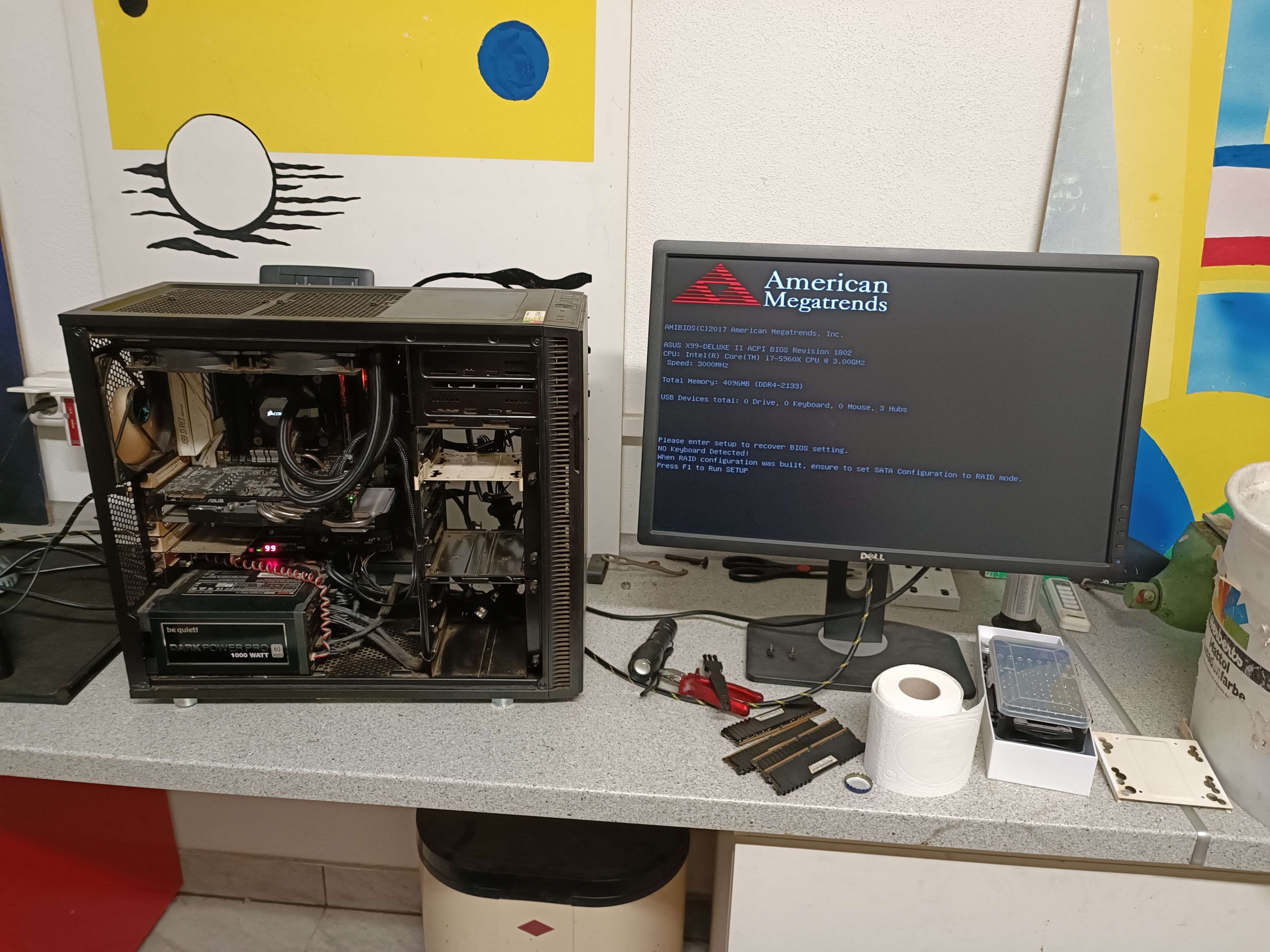 jemand, der Dämmschaum an jede Öffnung im Gehäuse vor die Lüfter geklemmt hat, damit sie leiser sind