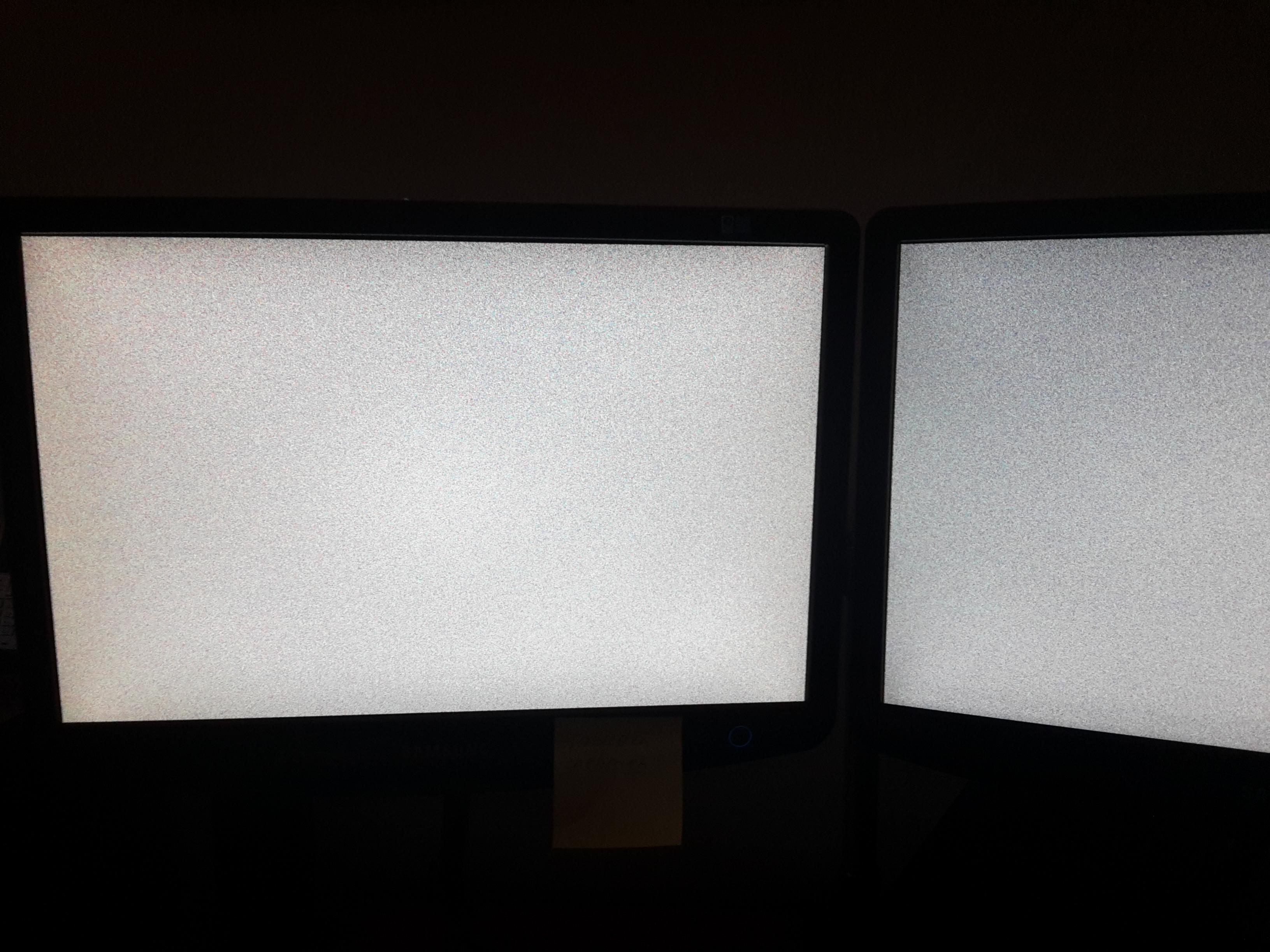 hab seit Kurzem das Problem, dass ich manchmal aus beiden, manchmal nur auf einem Monitor so ein Bildrauschen haben. Wie ein TV ohne Programm...
