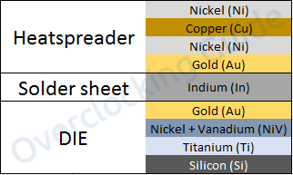 Man trägt auf den nackten Die Indium auf, im flüssigen Zustand. Da drauf kommt die Kappe, also the Integrated heat spreader. Das zeug härtet dann aus und überträgt Wärme dann hervorragend.