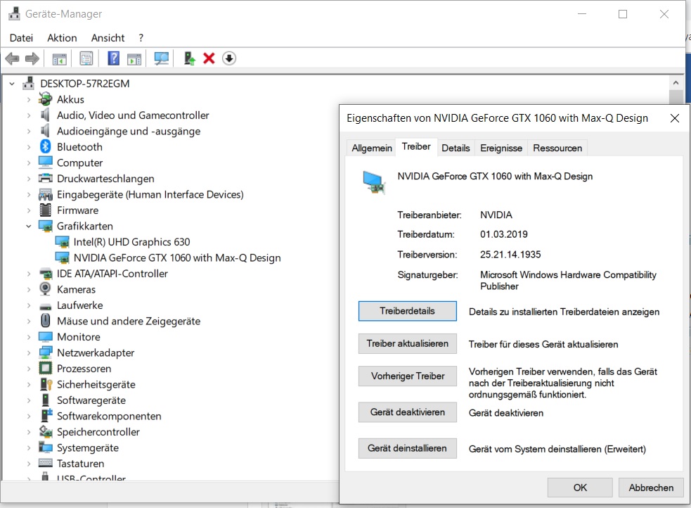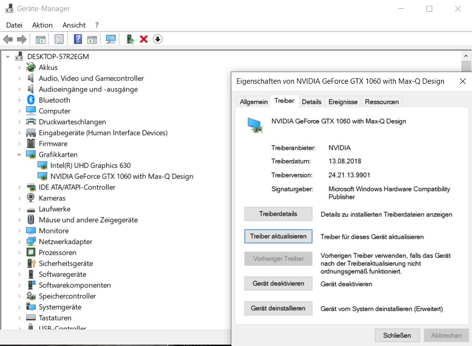 Im Gerätemanager scheinen alle Treiber dazusein, was ich nicht ganz verstehe ist, das ich keine Nvidia Systemsteuerung habe... die Treiber laut Gerätemanager sind auch schon vom August 2018 und wenn ich über die Nvidia Seite mir die Treiber für die 10xx Laptopreihe lade und diese installieren möchte bekomme ich auch ne Meldung das ich keine kompatible Hardware habe... ? Sind die Max-q Karten ne ganz eigene Sache oder wie ist das? Im Anhang mal n Screenshot des Gerätemanagers