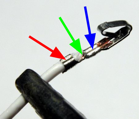 diese Stelle (per Crimp- oder zur Not Spitzzange) um die "neue" Leitung biegen: