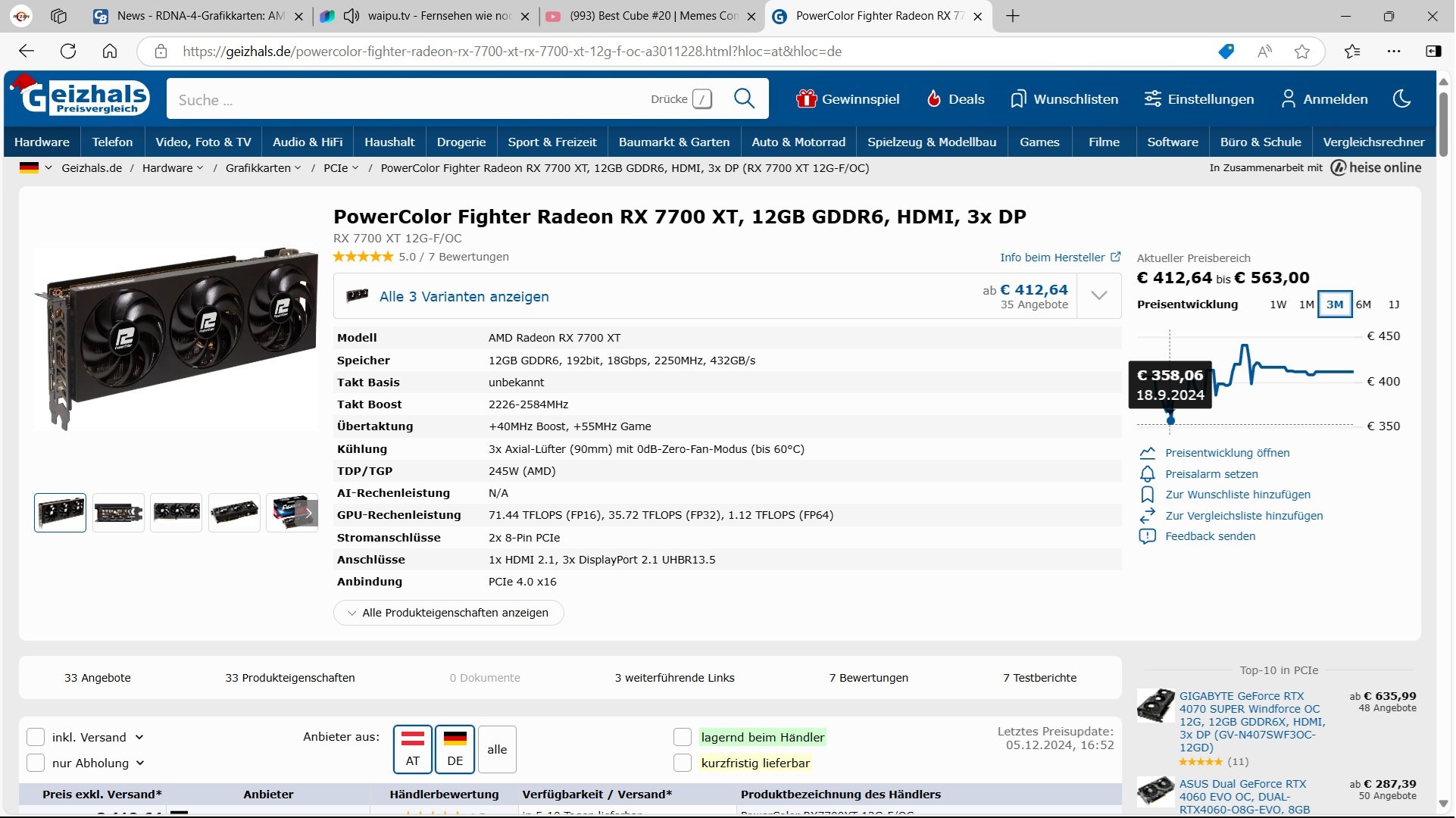 Jene gab es allerdings schon für ca. 350 €.Alesis schrieb:Eine 7700 XT für ab 411€ sind absolut und vollkommen nicht günstig.