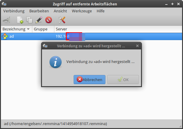 Neuinstallation von Remmina und Löschen der vorhandenen Verbindungen habe ich bereits probiert.