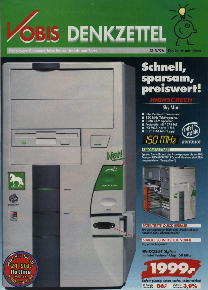 Das war tatsächlich so um die gleiche Zeit herum, mit einem Pentium 120 Mhz. Und dazu gabs Grand Prix 2 als Spiel - grandios.frankkl schrieb:Wieso graue Vorzeit mein erstes PC Gehäuse im Fertig PC mit Pentium 133 MHz von Juni 1997 sah ähnlich aus !