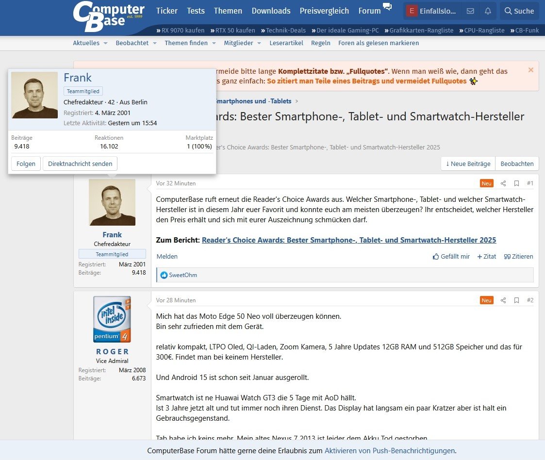 Also bei mir hat es sich mit der Seriösität jedweder Veröffentlichung wenn ich sehe dass der Chefredakteur etwas vor 32 Minuten gepostet hat wo er doch vor 22 Stunden das letzte Mal aktiv war, Zeitpunkt meines Kommentars vorhin...)))