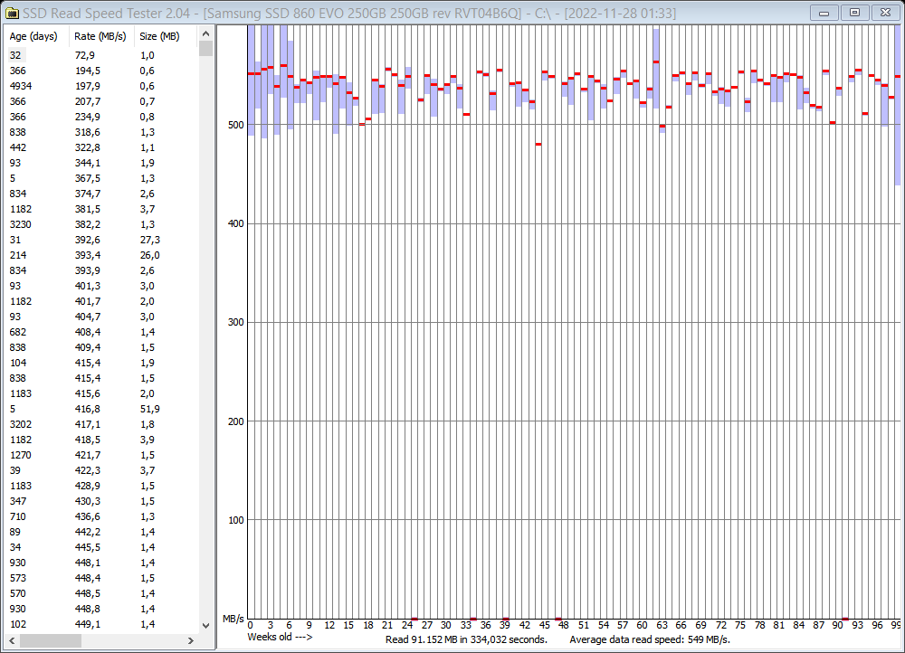 PS: Nochmal drüber nachgedacht...die starken Schwankungen der read speed bei deiner SSD sind ja überhaupt nicht ans Alter gebunden. Vielleicht ist auch alles okay und es liegt wirklich nur an der Art der Dateien. Du musst uns freilich nix über den Inhalt erzählen, aber sind es vielleicht eher viele, kleine Dateien?
