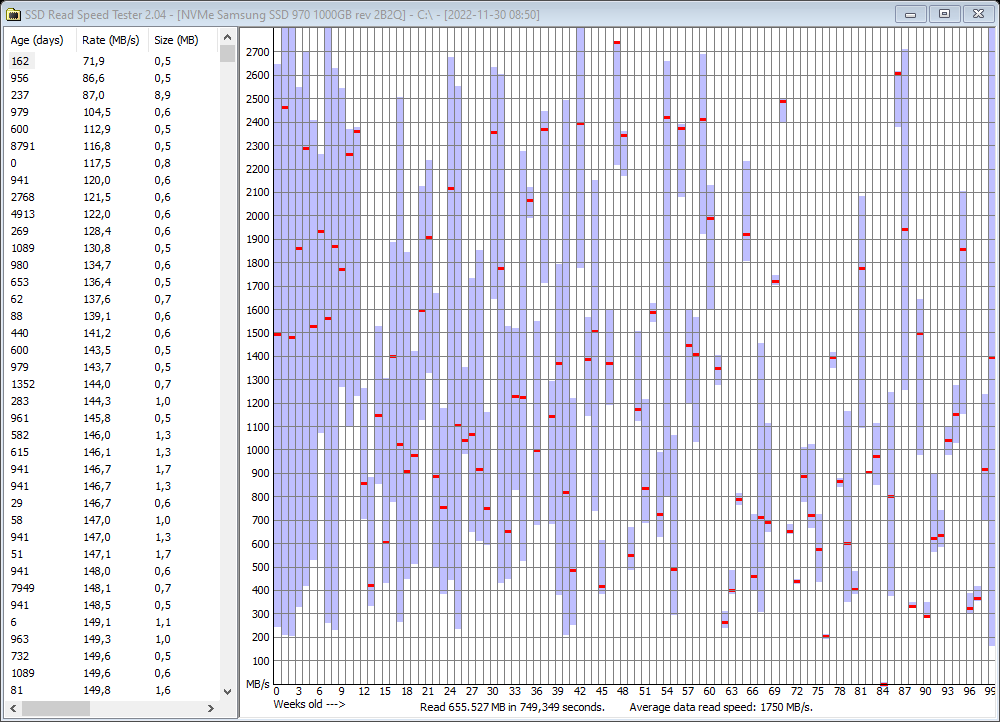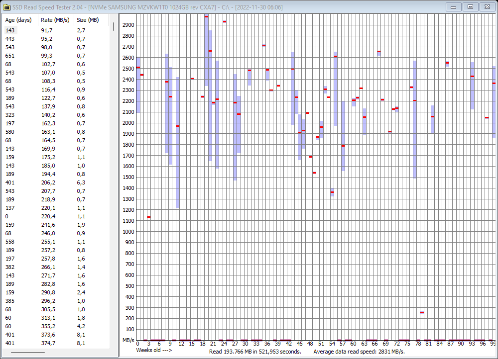 Readspeed degradation 2022 kein Thema mehr ? Von wegen ! MP510 -> 14MB/s ! 980pro auch nicht ohne Probleme...