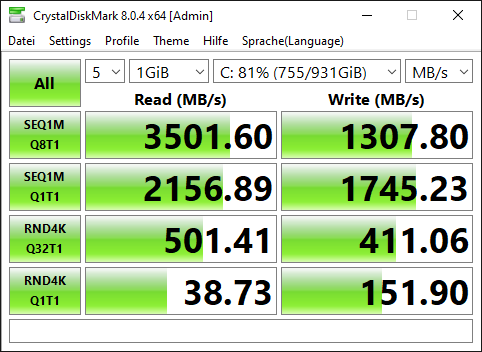 Meine steinalte Samsung SM961 hab ich auch getestet hat aber ohne Refresh 2800MB/s.