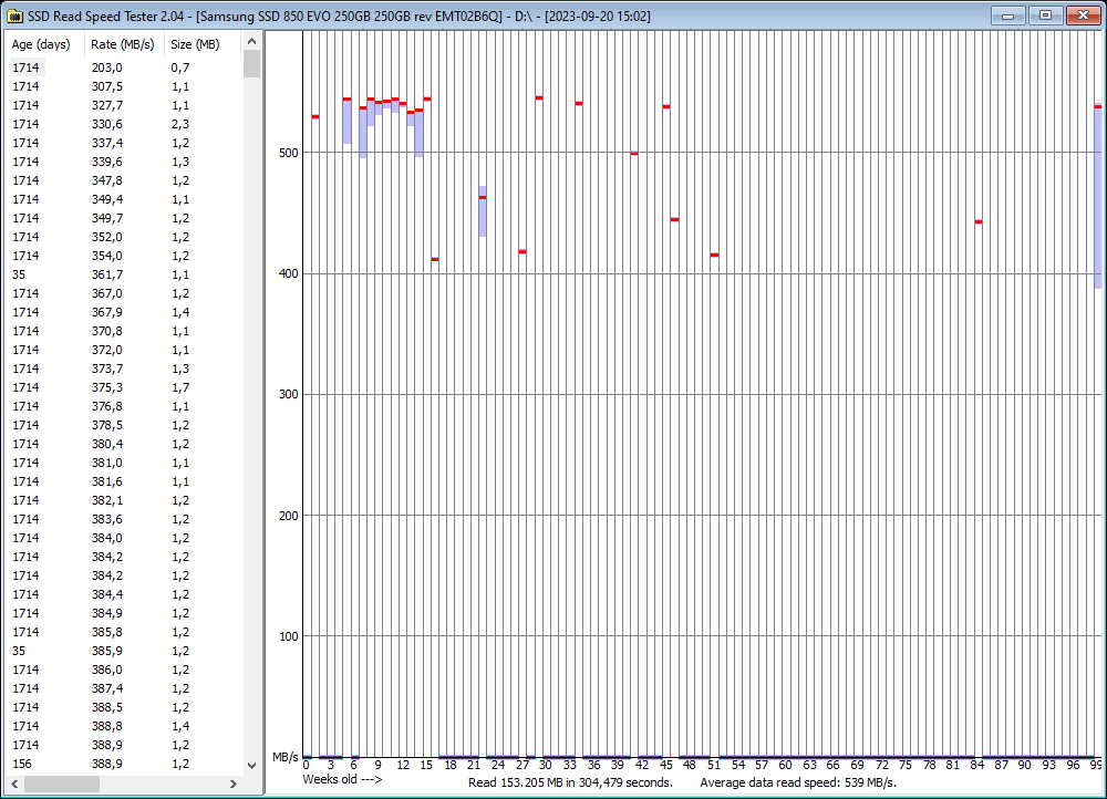 Mit der Fastro 250/2TB hab ich mal was anderes gemacht. Ich hab 2x den Speedtest durchlaufen lassen. 1500 Dateien wurden im zweiten aber nicht ersten Lauf erfasst. Das wurde hier ja schon erwähnt - das das ganze ein wenig Random ist. Hier gab es dann schon Unterschiede bei den Dateien ...