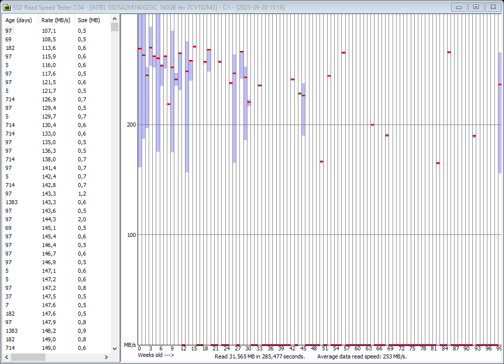 (*) was mir zum Dateialter aufgefallen ist ... das ist doch schrott. Die M2 ist noch kein Jahr alt. Die älteste Datei ist 3200 Tage alt. Das Spiel selber ist durchaus so alt - aber die Installation bei mir auch noch kein Jahr. Das heißt hier wird nicht das Datum genommen wann die Datei auf die M2 geschrieben wurde. Hab mir die Datei angeschaut. Durch update wurde die am 11. September komplett neu geschrieben. Was sind das also für AGE(Days) beim Speedtest? Wie werden aus 9 Tagen, 3200 Tage?