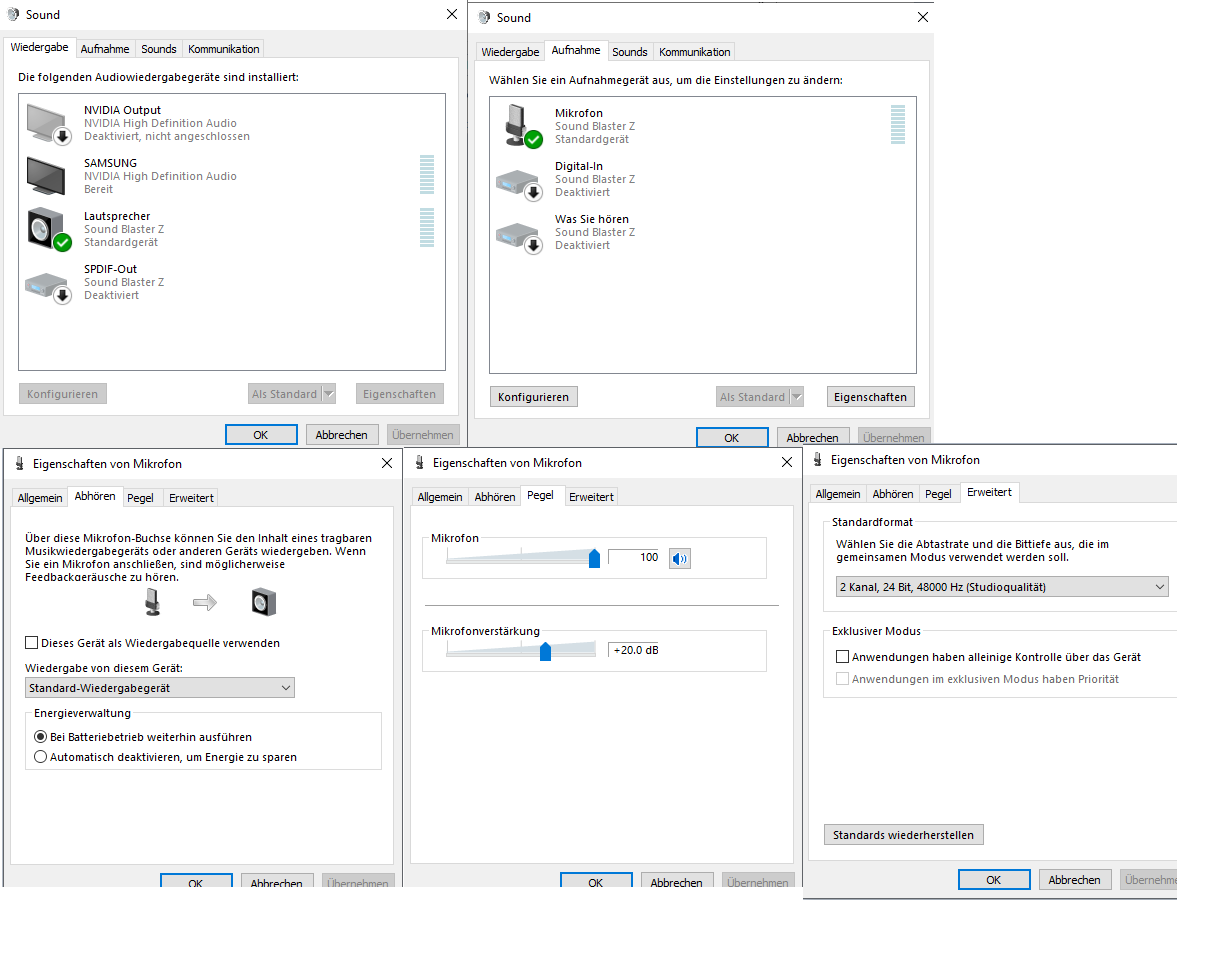 Ich habe Windows 10 installiert und habe aber leider seit dem zu wenig Soundlautstärke, also nicht das es total leise ist aber nicht ausreichend. Ich hatte mir erst ein neues Surroundsystem gekauft und ein neues Headset was seit 3 Monaten am alten PC voll ausgereicht hat. Jetzt aber bei meinem neuen Mainboard bekomme ich nur ca. 60% der Lautstärke von früher. Bei meinen Boxen hat es immer gereicht es auf Minimal Volume zu haben und dann mit der Windows Volume Einstellung per Tastatur zu erhöhen was Standard 60-80% ausreichte, wenn es mal scheppern sollte 100% inzwischen wenn ich Laut Mukke hören will muss ich an den Boxen auf 100% gehen was aber nicht immer ausreicht. Ebenso bei meinem Headset das hat an der rechten Ohrmuschel ein Regler der ebenso beim zocken maximal auf 40-50% war weil sonst die Mitspieler den Ingamesound hörten. Auch hier muss ich inzwischen oft hochregeln wenn ich ein leiseres Video hören will oder Sprachnachrichten die nicht so Laut sind, was nervt. Ich habe schon im Abgesicherten Modus mit DDU den Realtek Treiber deinstalliert und den neusten Treiber von ASUS installiert (DRV_Audio_SZ_RTK_500_DTSC_W10_64_V6089711_20200826R). Ebenso habe ich den Sound Manager nicht womit ich doch einige Einstellungen einstellen konnte. Würde mich sehr freuen wenn man mir helfen könnte weil es wohl sehr viele Realtek Probleme gibt und ich meines nicht gefunden habe. Bedanke mich im voraus