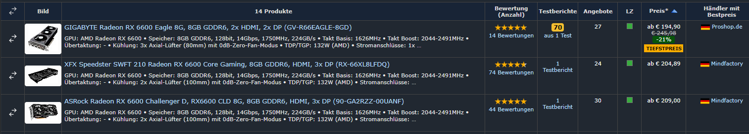 Das Ganze merkt man daran, dass alle die Preissteigerungen mitgemacht haben, ohne dass auch nur eine Karte mit einem Hammerpreis" daherkommt, was nach dem gleichzeitigen Mining-Boom und Corona und deren Engpässe anschließend wieder absolut möglich gewesen wäre.