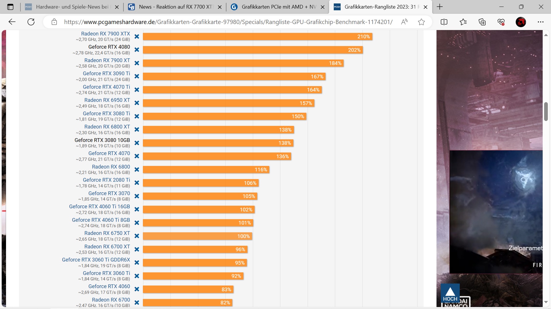 RTX 3070/RX 6800 zu erreichen...wenn die auf 100W eingebremst sind.