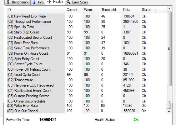 Du könntest auch mal den Health-Reiter aus HD Tune (hier auf CB/FB unter den Downloads) posten.