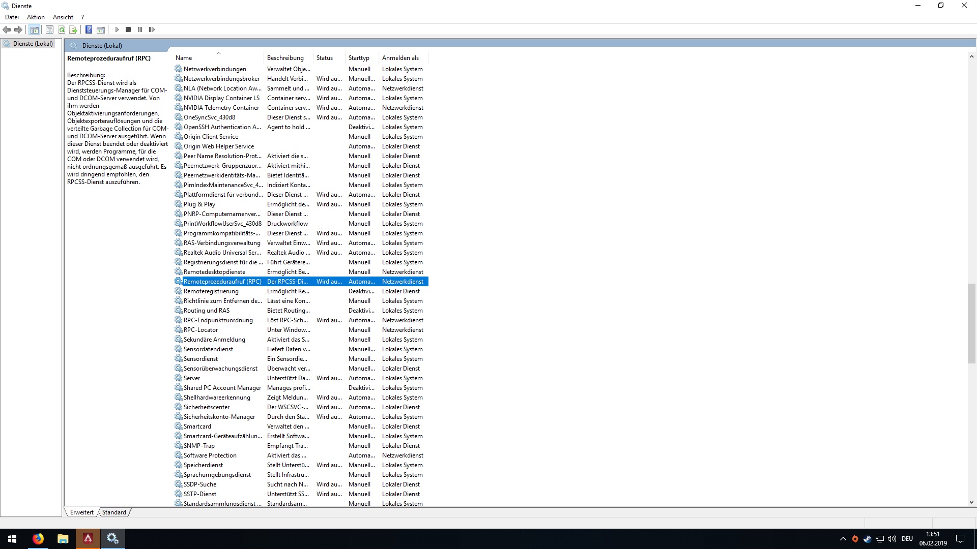 "Kann keine Verbindung zum RPC-Dienst herstellen."