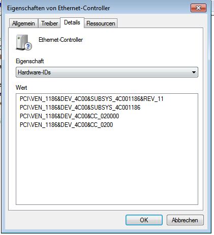 Soo habe den Ethernetcontroller wieder gefungen im Geräte Manager.