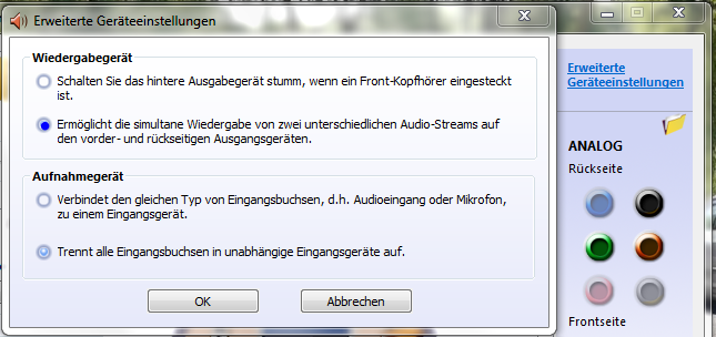 Habe das Asus P8Z77-V Deluxe Mainboard mit Realtek Chipsatz. Der hat ja auch 3 Klinken- Ausgangsbuchsen. Jetzt würde ich gern auf 2 Buchsen (Stereo Out und Rear out (z.B.) ) genau den gleichen Sound ausgeben. (Anschluss von Headset + Stereo Anlage).