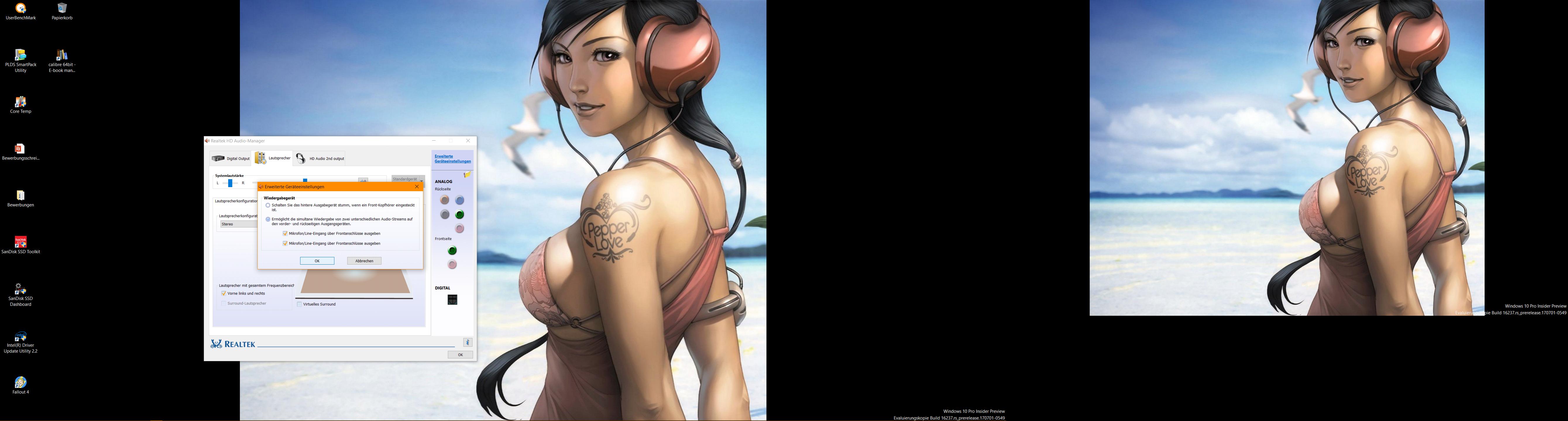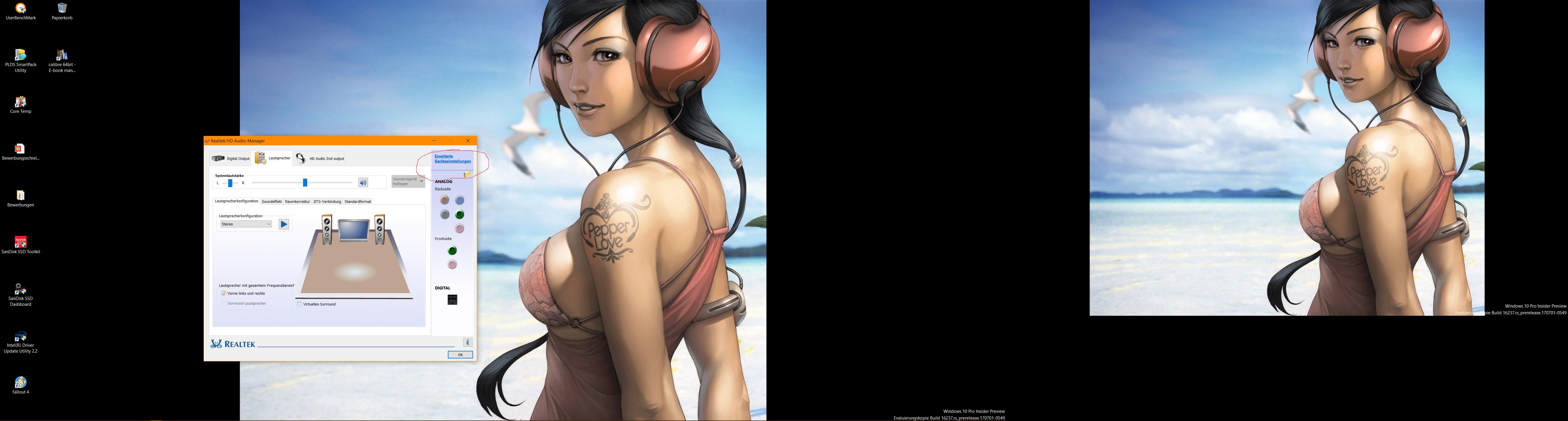 Ich betreibe daran ein Teufel 5.1 System und Beyerdynamic DT-770 Kopfhörer. Das 5.1 System ist standardmäßig in LineOut, Rear und Sub/Center drin. Wird natürlich erkannt. Den Kopfhörer habe ich in "LineIN" gesteckt.Früher hat mich die Software gefragt "Was haben sie in den Ausgang "LineIn" gesteckt und ich konnte "Kopfhörer" auswählen und dann alle möglichen Einstellungen für Kopfhörer vornehmen. Seitdem ich jedoch die neuesten Realtek-Treiber installiert habe, gibt es "Kopfhörer" nicht mehr zur Wahl. Nur noch Lautsprecherausgang, seitliche Lautsprecher, hintere Lautsprecher und Center/Sub. Davon ist es ja aber nichts und ich kann eben keine Einstellungen mehr für Kopfhörer vornehmen, da die Software auf einmal diese Auswahl nicht mehr hat. Gibt es hierfür eine Lösung? Front-Out ist keine Option, da es dort rauscht.