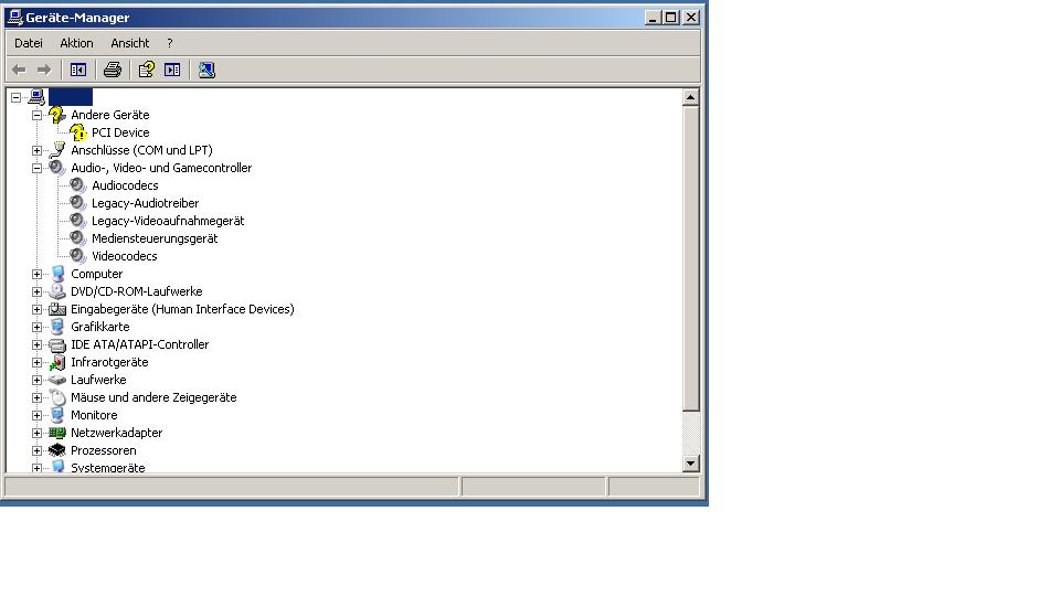 Im Anhang nochmal der Gerätemanager. Was die unbekannte PCI- Device angeht... kann das der soundchip sein?