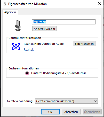 Das hab ich vorhin schon probiert. Mein Mainboard Hersteller ist HP und ich hab sowohl von dort als auch von realtek selbst die Treiber geholt und jedes mal bekomme ich zwar einen Sound, also die Kopfhörer werden erkannt, nur mein Mikrofon nicht. Mein Mikro ist am Kabel befestigt und nicht am Kopfhörer. Ich hab ein anderes Kabel benutzt wo ein Mikro dran war, was auch nicht erkannt wird. andere Kopfhörer mit anderem Anschluss funktionieren (hab erstmal USB-C Kopfhörer probiert, aber normale USB Kopfhörer müssten auch gehen)