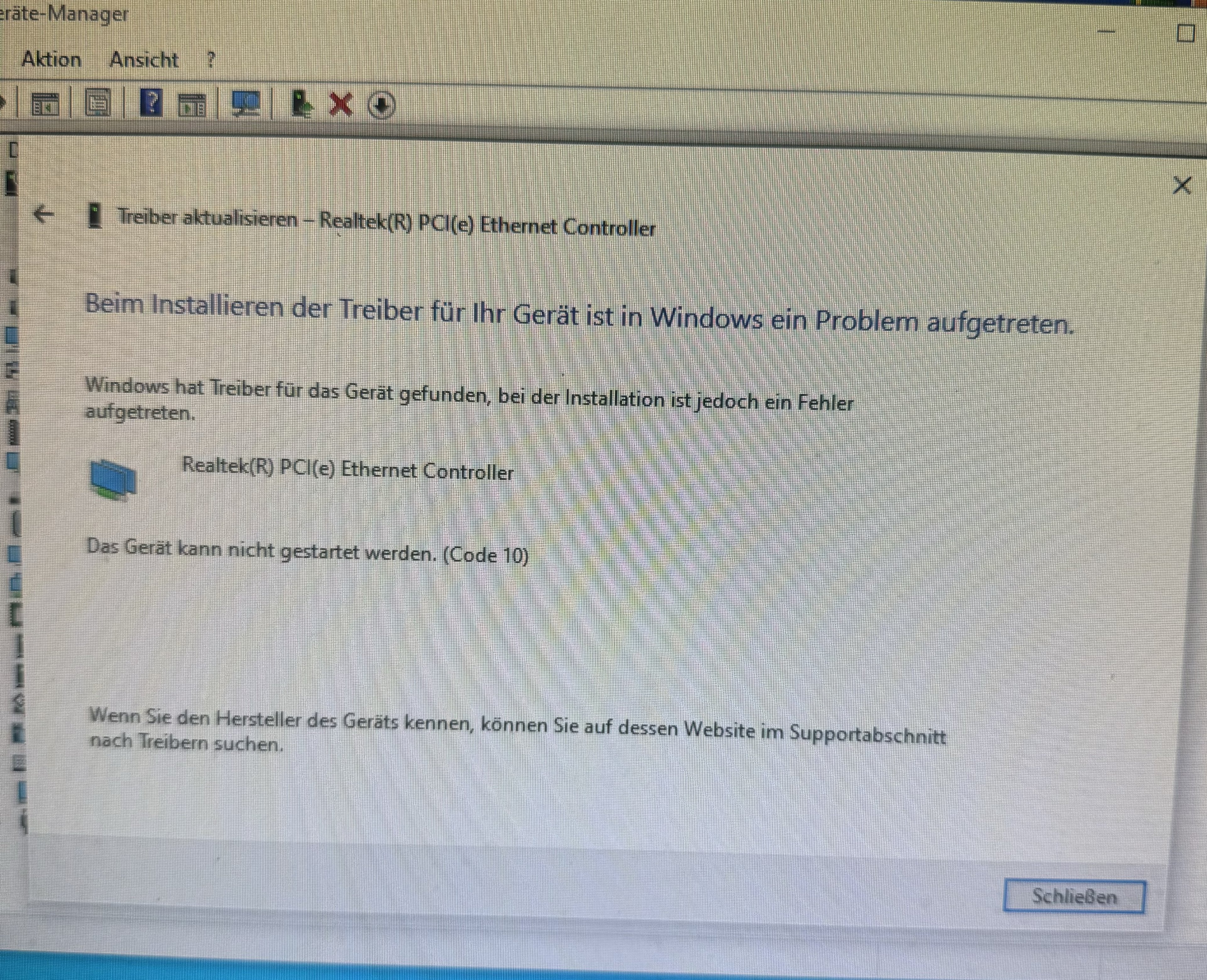 Realtek treiber nicht vorhanden nach pc reset Code 10