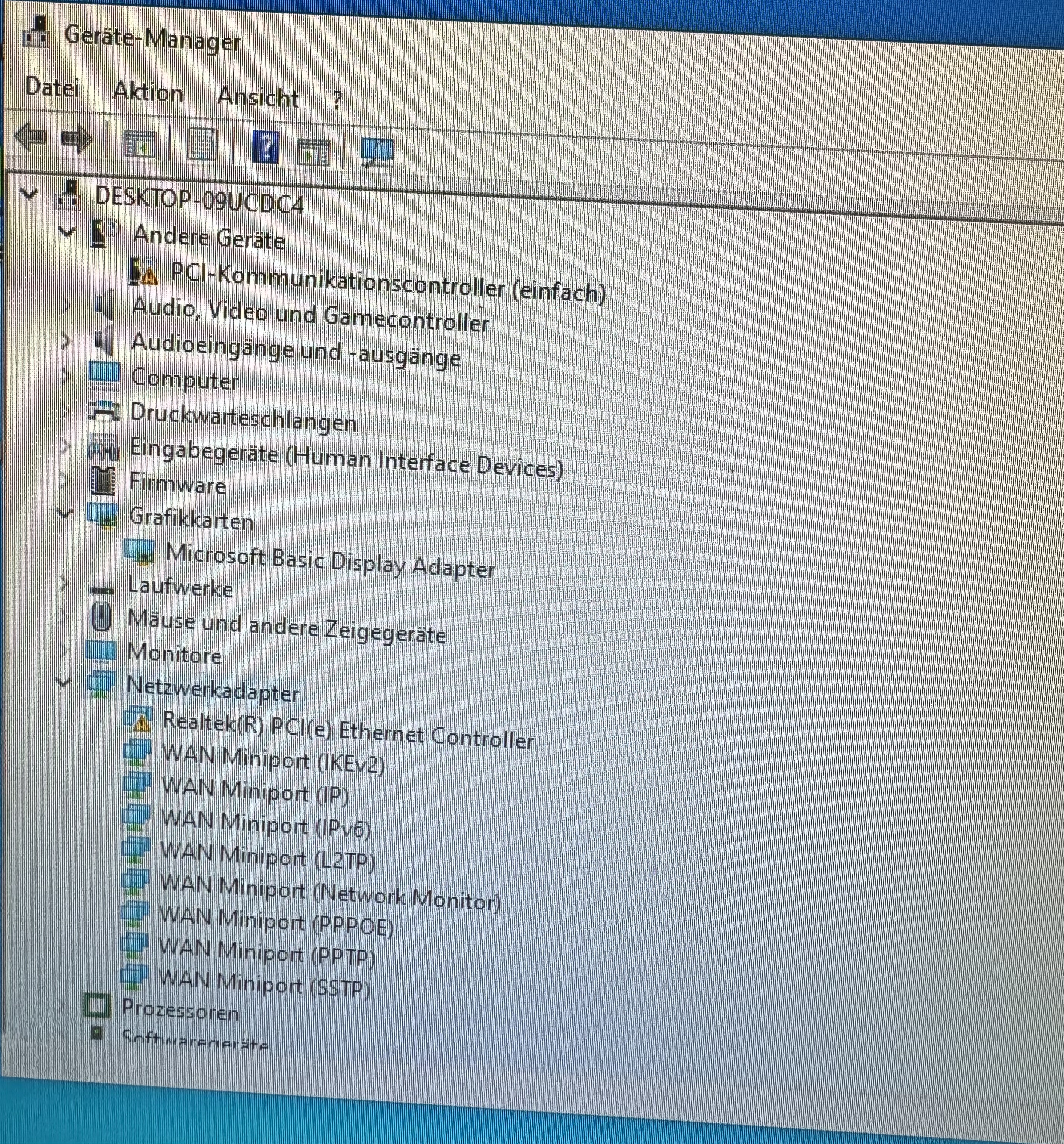 ich habe meinen Pc komplett neu auf gesetzt mit Usb stick Boot und seid dem wird im Geräte Manager kein Ethernet und keine Grafikkarte mehr angezeigt und für Ethernet habe ich schon die neuen Treiber runter geladen bei meinem Mainboard Anbieter aber es kommt immer Code 10