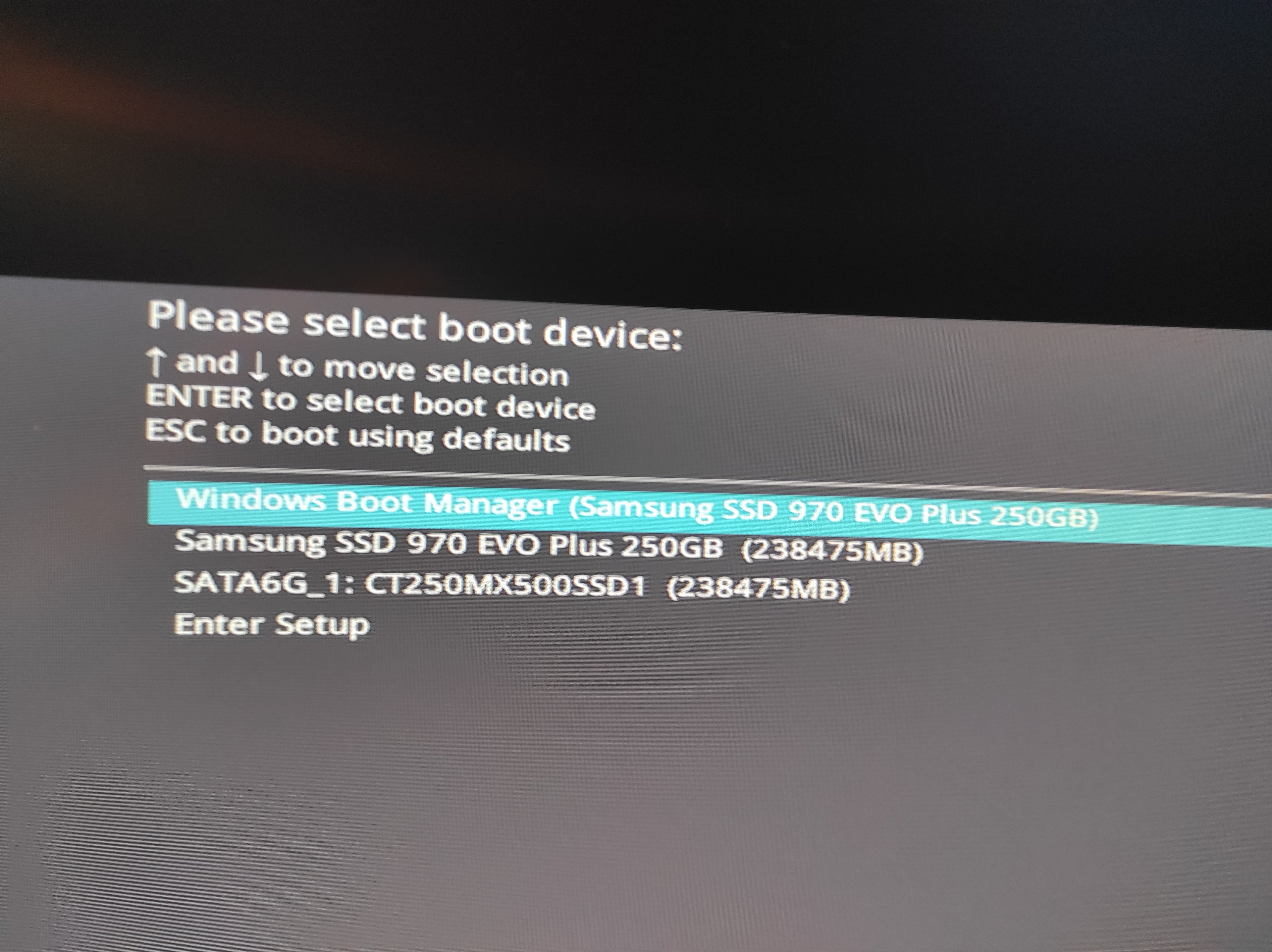 Zwischendurch hatte ich da auch die Fehlermeldung "Reboot and select proper boot device" aber nach ein paar mal rebooten gings dann. Aber jetzt habe ich das Problem wie oben beschrieben, wenn ich meinen PC hochfahre.